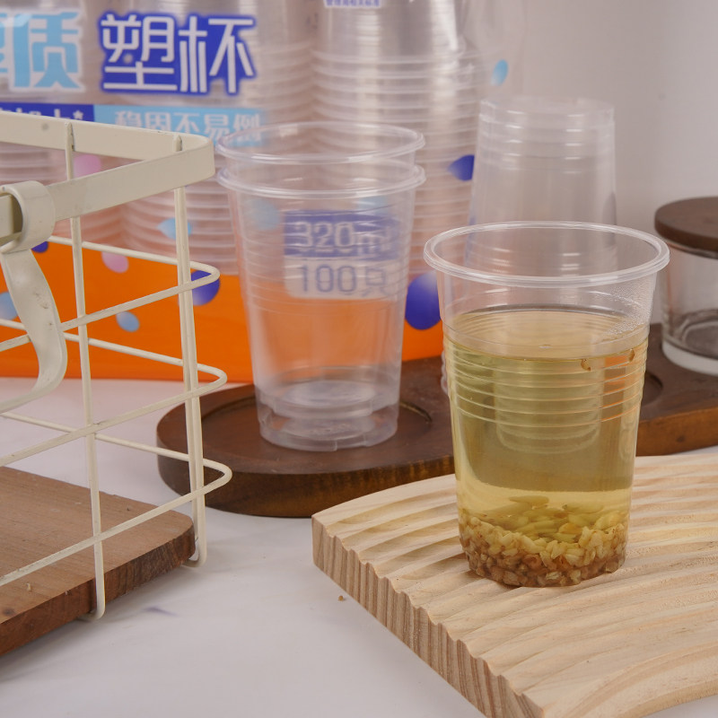 妙洁一次性杯子塑料杯加厚耐高温纸杯透明商用茶杯家用中大号整箱