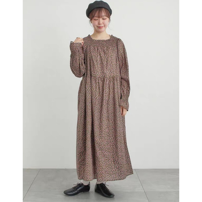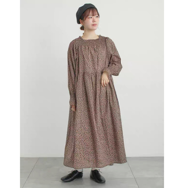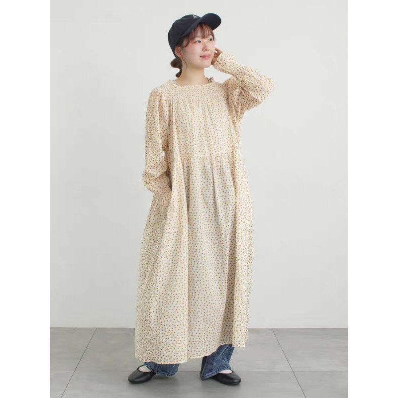 2026日单S家夏季全棉碎花口袋连衣裙司马克圆领宽松森系收腰长裙