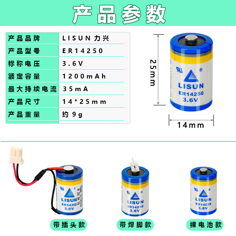 适用LISUN力兴 ER14250 台达PLC编程器定位仪表电池 1/2AA 3.6V锂电池