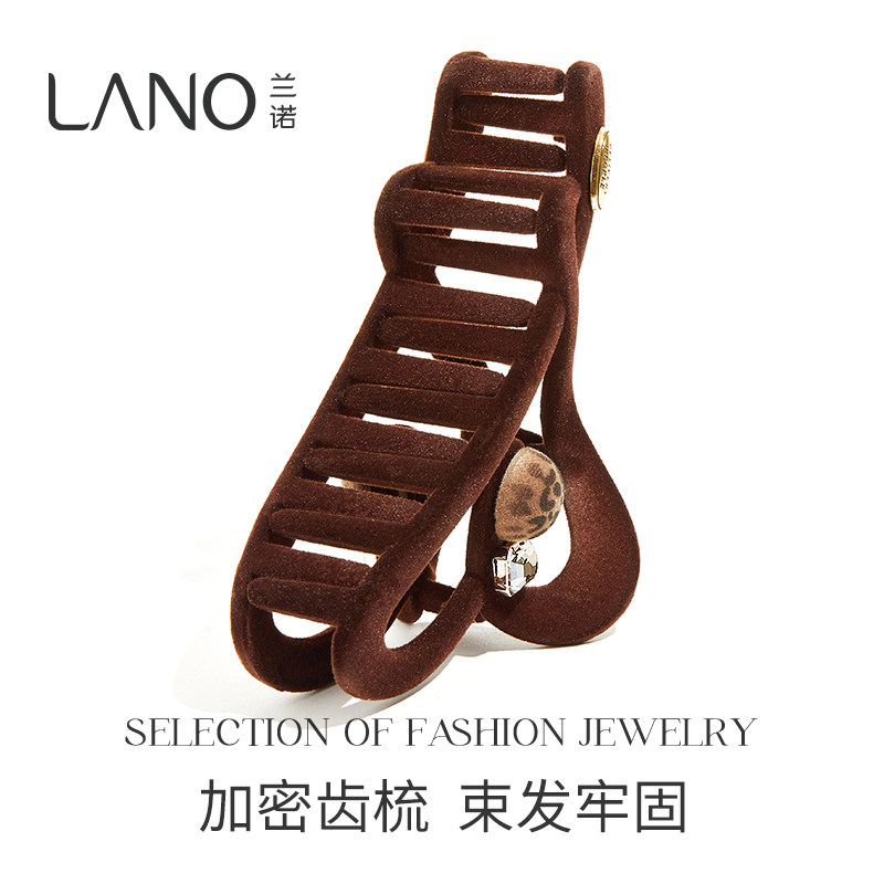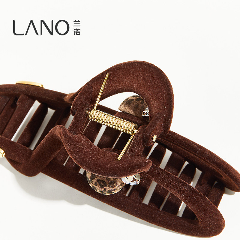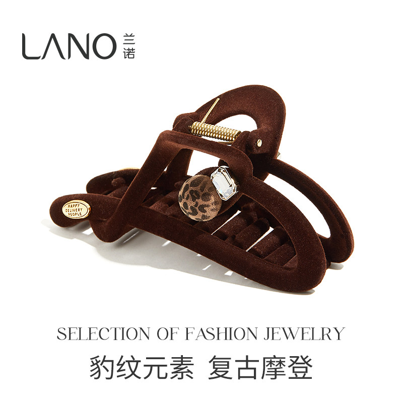 兰诺丝绒爱心豹纹抓夹女高级感2025新款大号发量大后脑勺半扎发夹