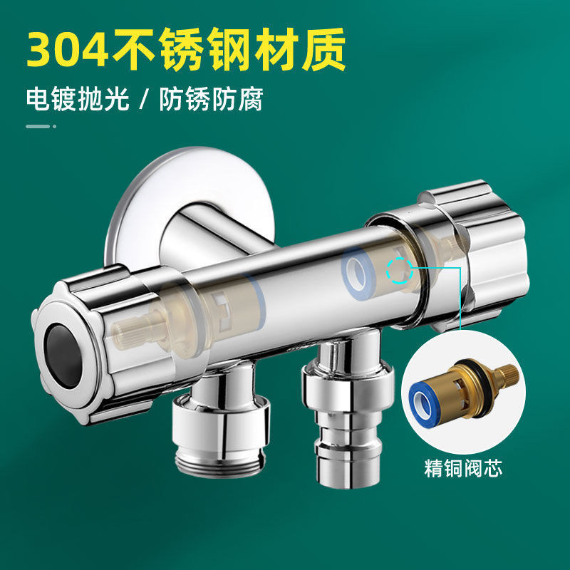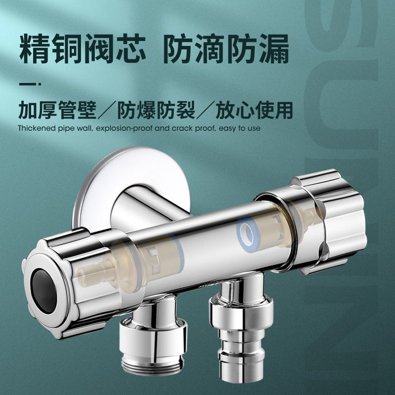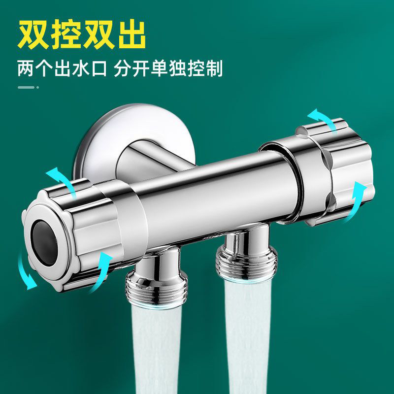 三通角阀全铜一进二出水龙头开关一分二双洗衣机三角阀分水器接口