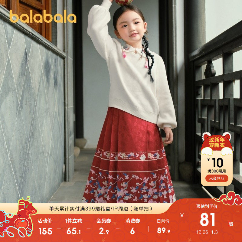 巴拉巴拉童装女童国风套装新中式红毛衣马面裙毛衫2025春秋装纯棉