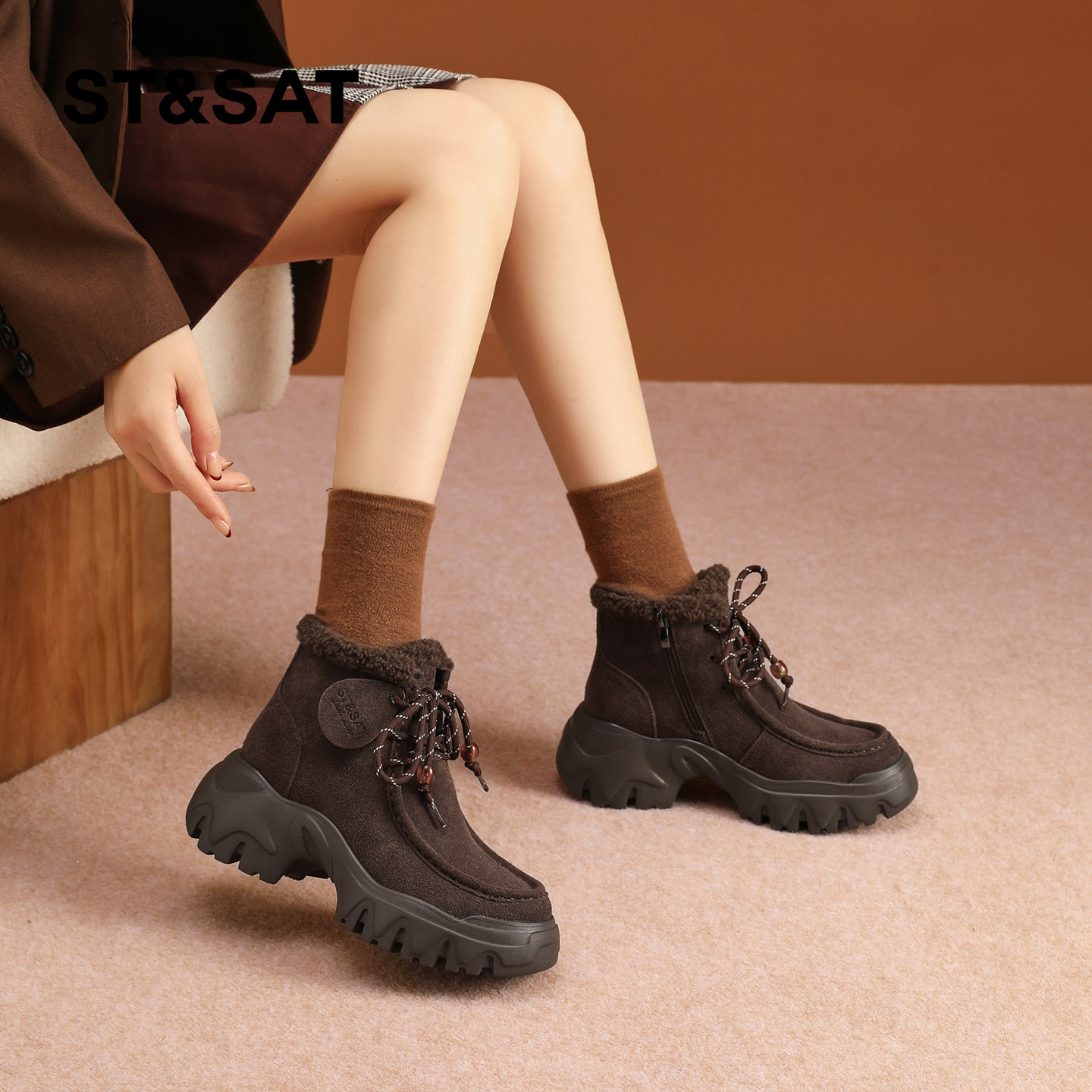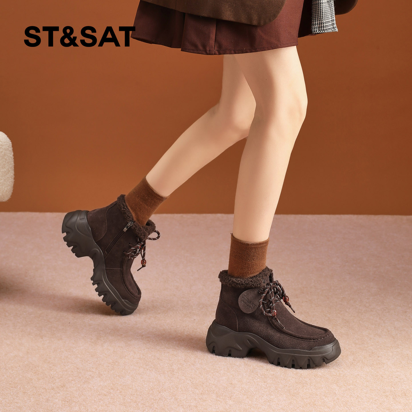 星期六雪地靴女冬2025冬季新款厚底女款靴子短靴加绒加厚保暖棉鞋