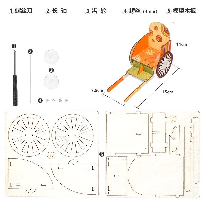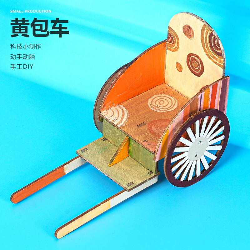 黄包车幼儿园手工小制作学生小发明动手动脑拼装课程材料包半成品