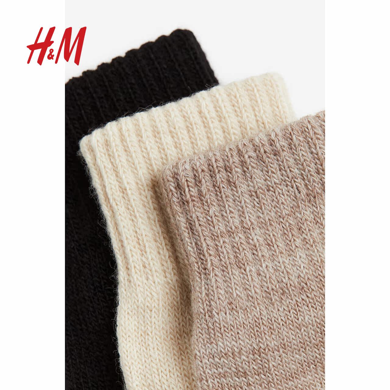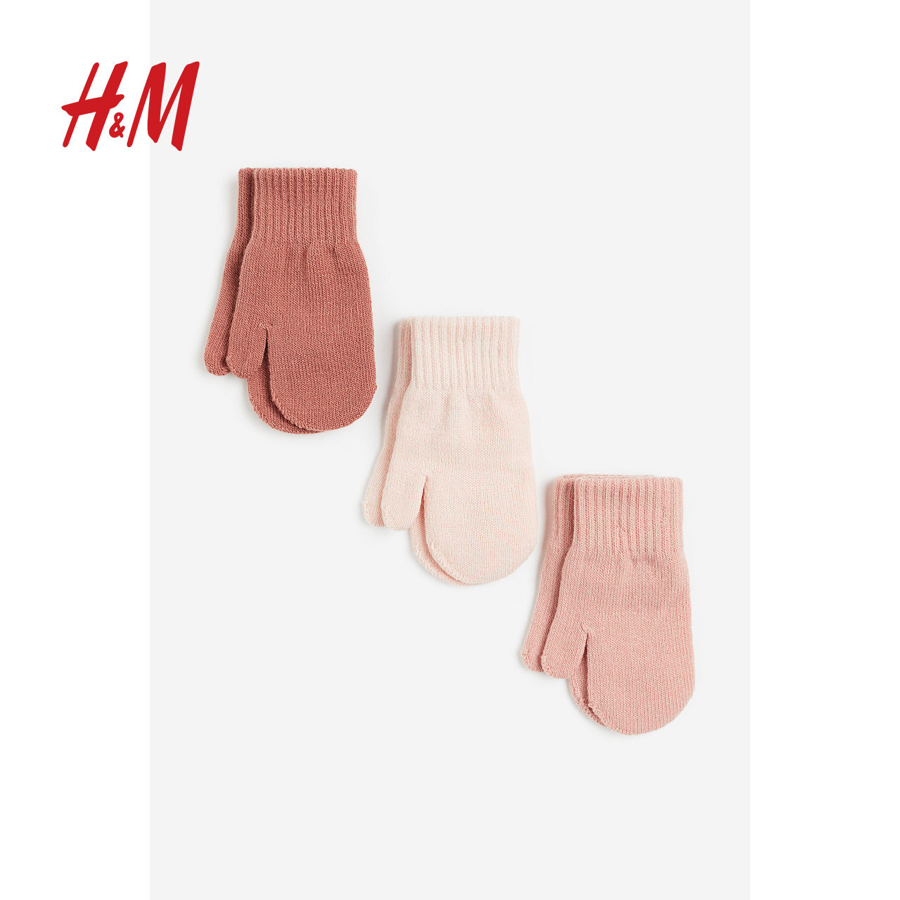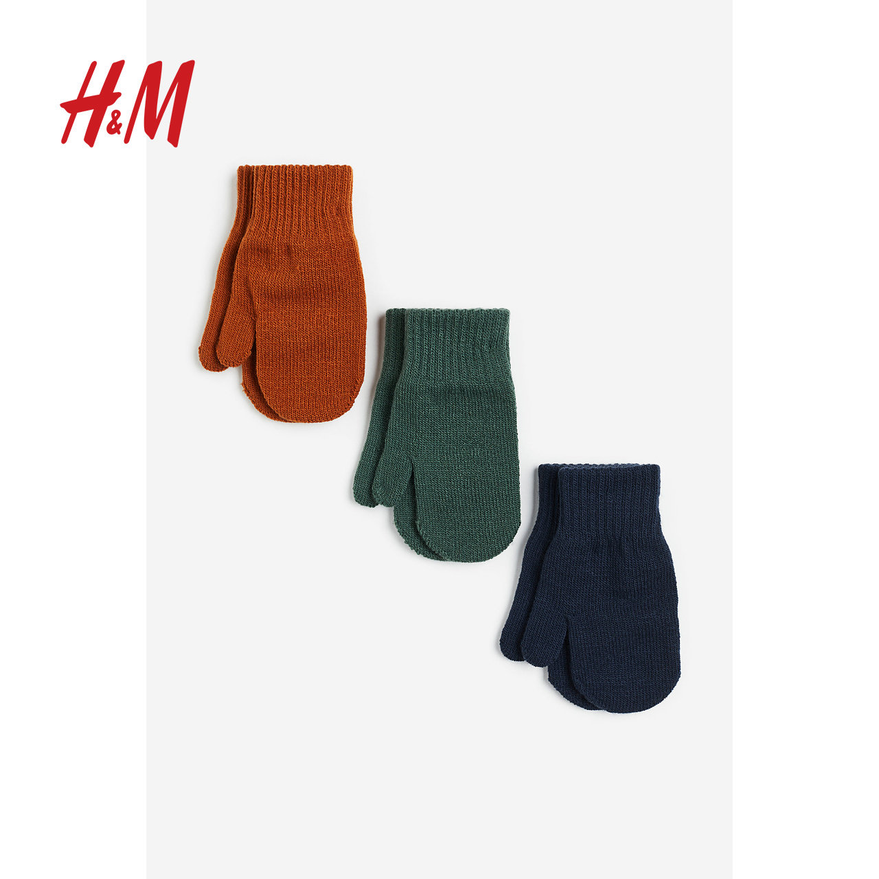 HM童装男婴冬季新款防寒保暖柔软针织连指手套3副装0862642