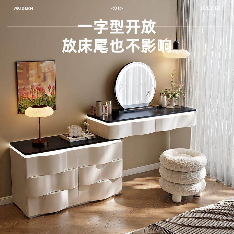 2025新款轻奢梳妆台卧室现代简约奶油风实木化妆桌斗柜一体化妆台