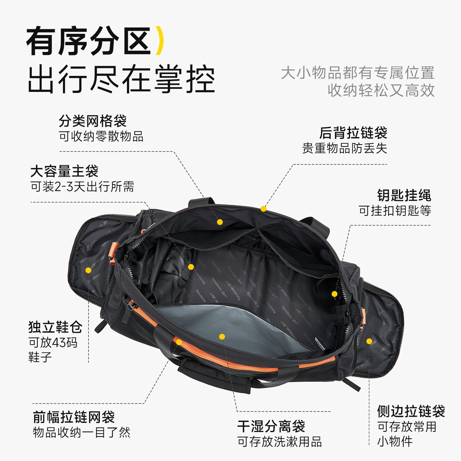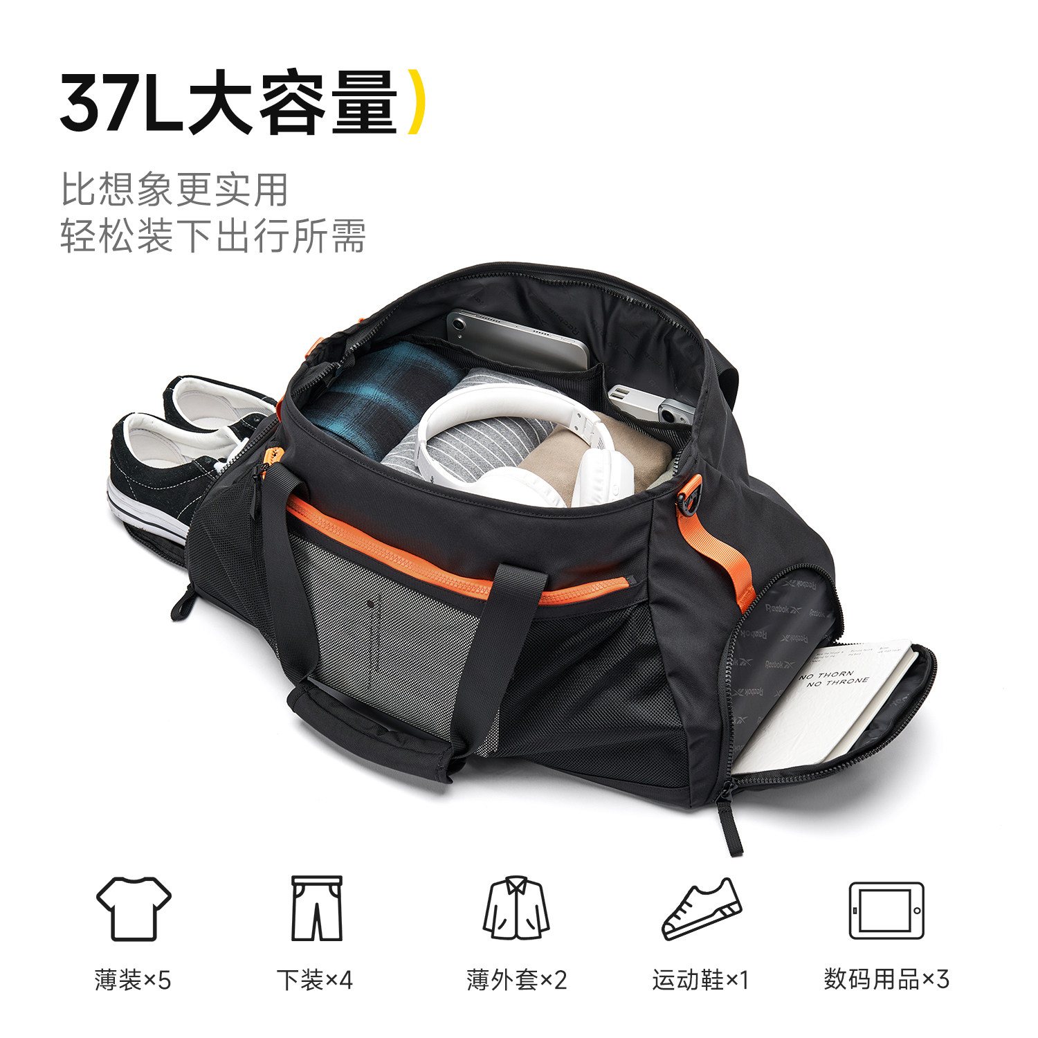 Reebok锐步运动健身包女斜挎背包旅行包男士大容量干湿分离训练包