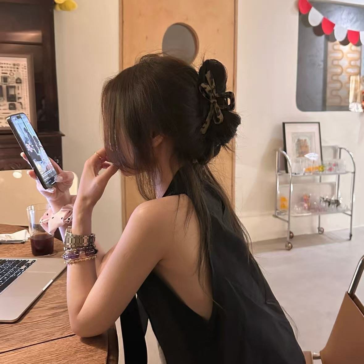 甜酷风~大号豹纹抓夹女高级感南瓜款盘发夹后脑勺发量大鲨鱼夹