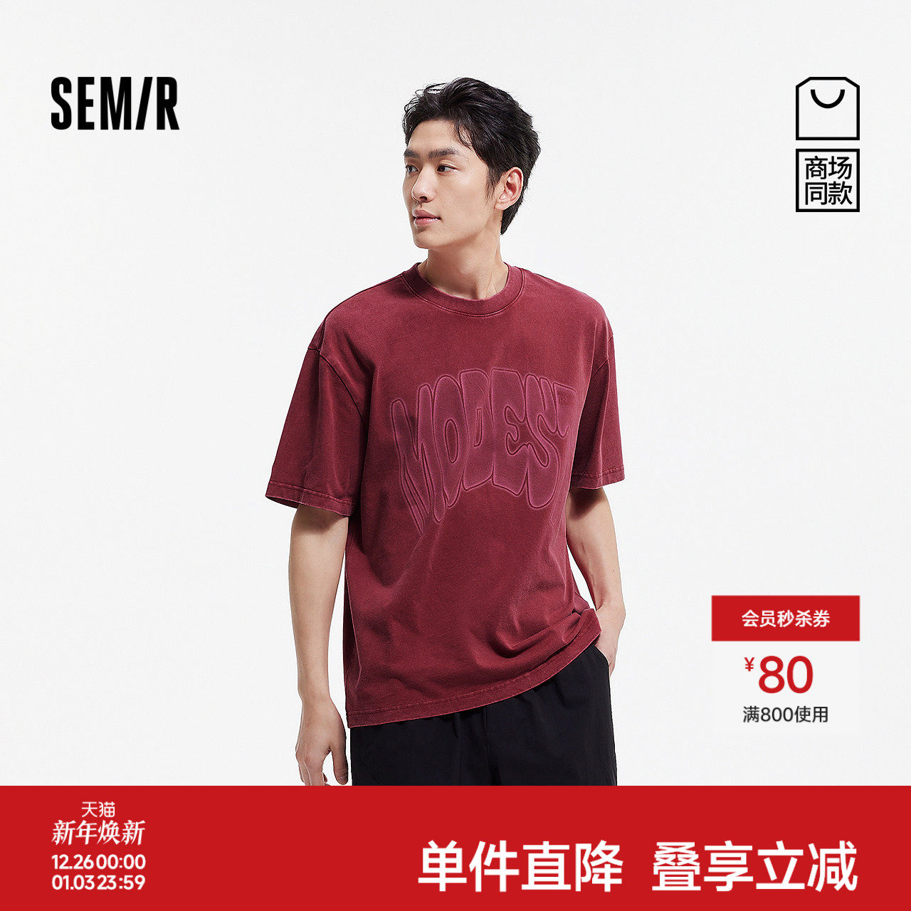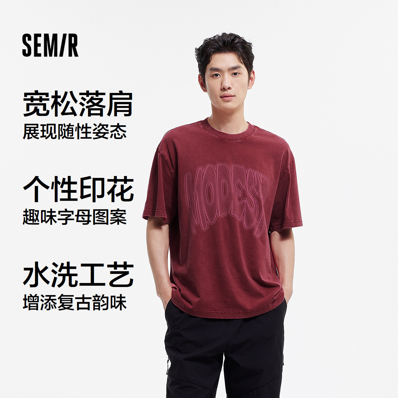 [商场同款]森马短袖T恤男复古水洗美式字母印花上衣2025新款夏装