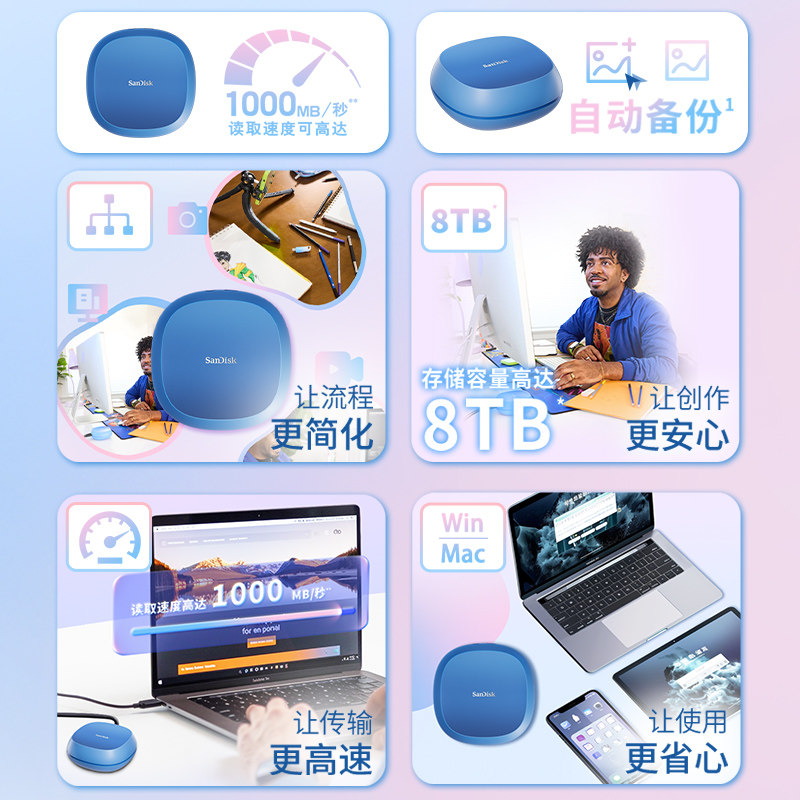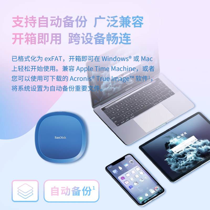 闪迪E61固态移动硬盘2t三防便携ssd外接1tb大容量手机电脑两用