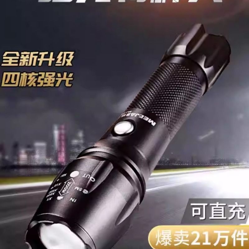 硕森超亮手电筒强光充电户外激光家用小型迷你便携耐用多功能远射