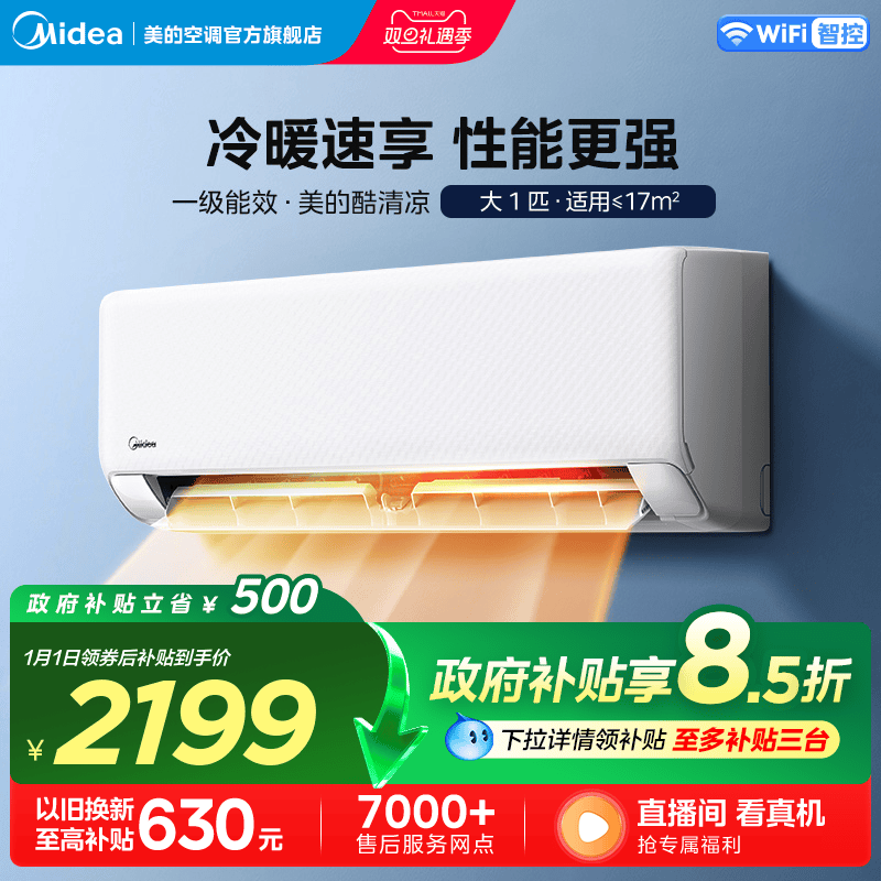 美的官方空调一级省电节能大1匹卧室变频冷暖挂机酷清凉