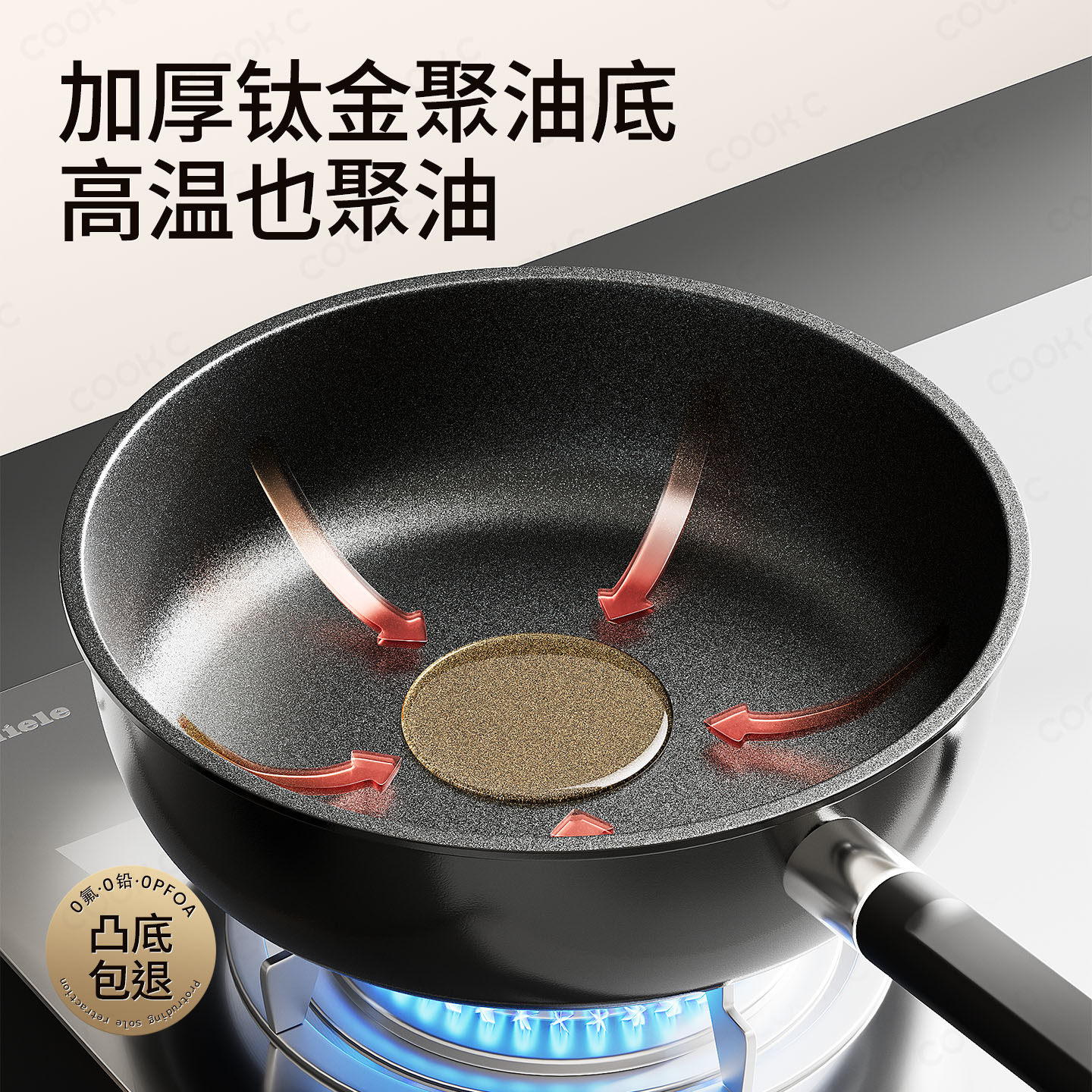 钛无涂层平底锅不粘锅家用牛排电磁炉煤气灶专用炒菜锅不沾深煎锅