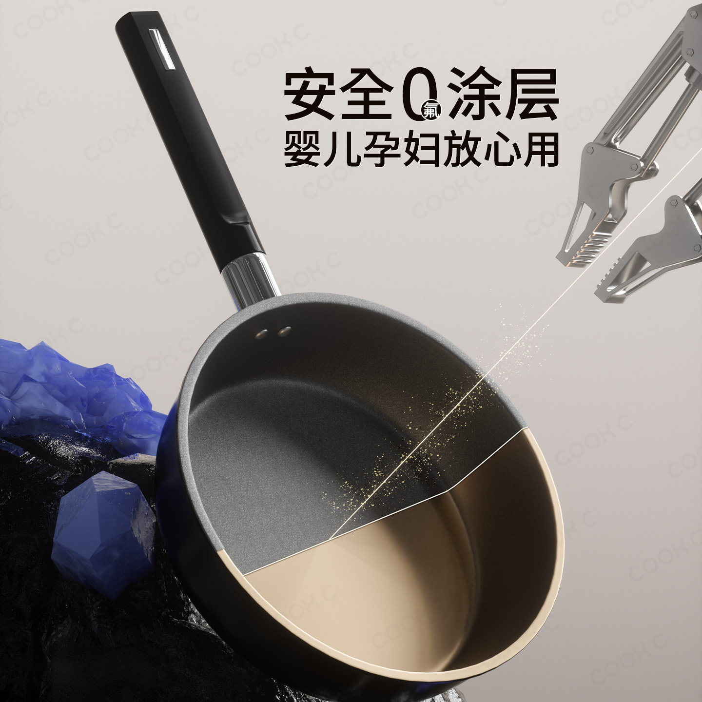 钛陶瓷聚油煎锅平底锅不粘锅家用牛排小煎锅煎蛋煎饼电磁炉专用N