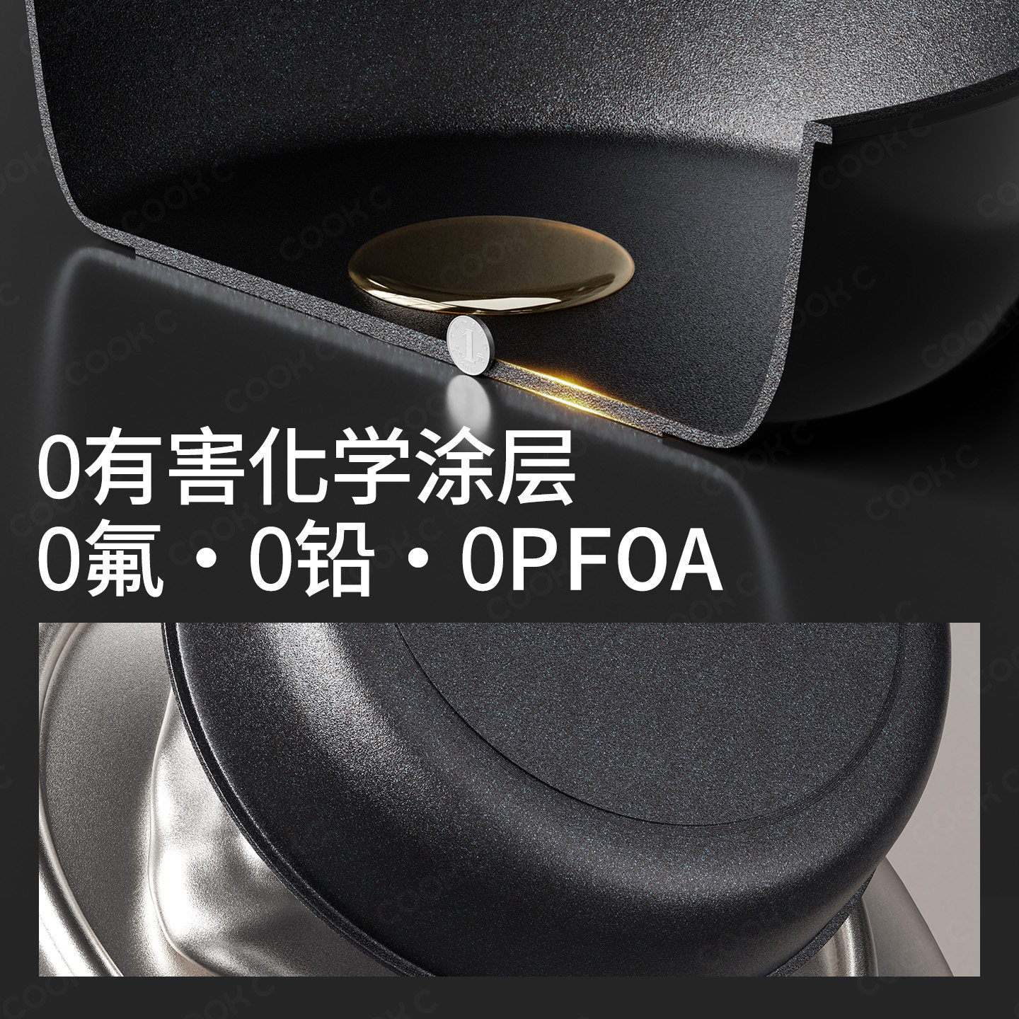 钛红芯控温平底锅不粘锅家用无涂层炒菜煎蛋牛排电磁炉专用深煎锅