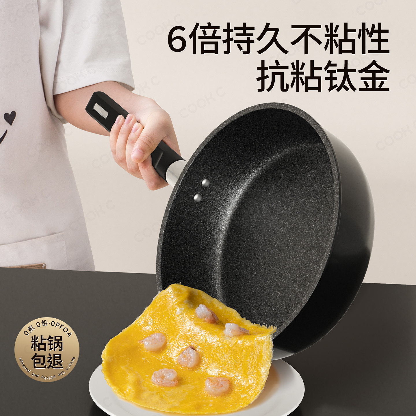 炊大皇无涂层平底锅不粘锅家用牛排煎锅煎蛋电磁炉燃气灶专用钛锅