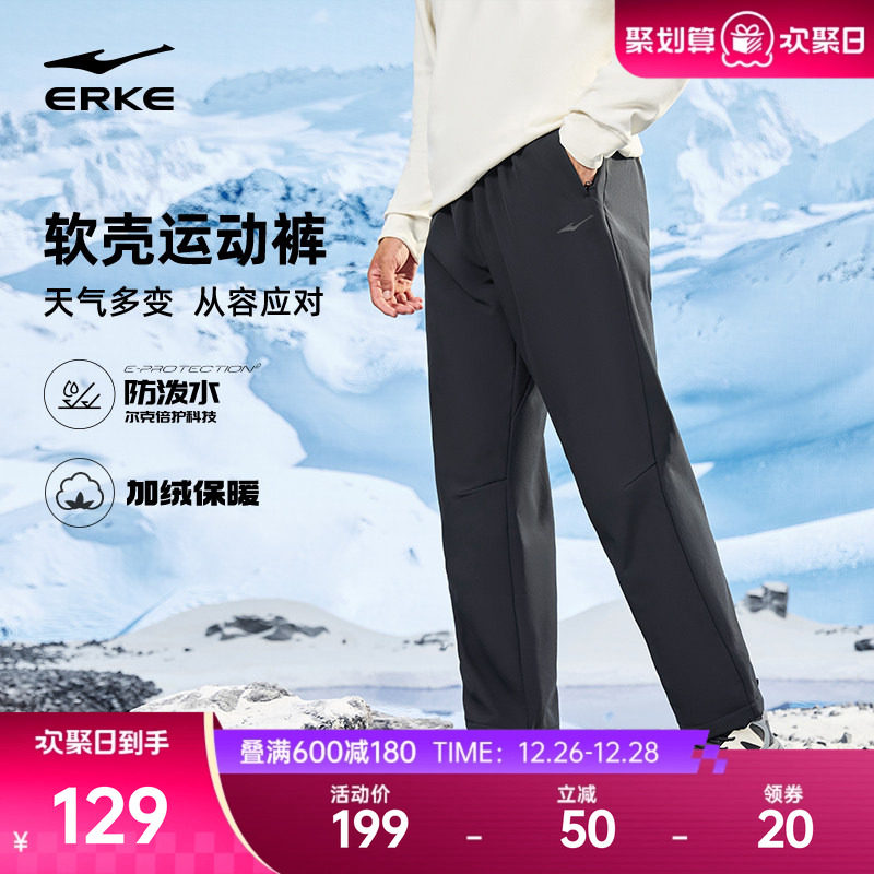鸿星尔克裤子冬加厚男防风直筒长裤男士软壳运动裤爸爸休闲裤男裤