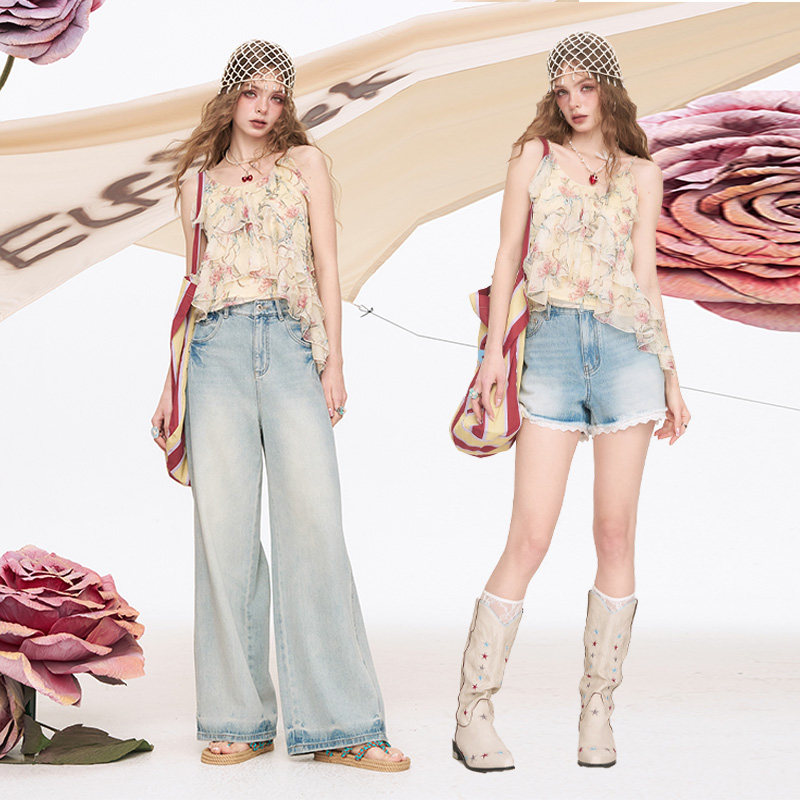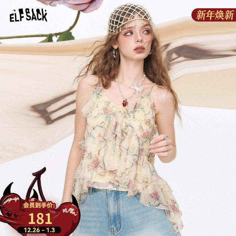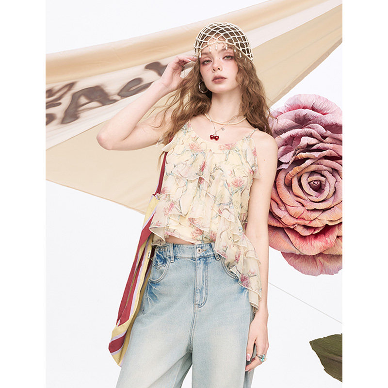妖精的口袋原创花卉满印雪纺吊带女2025年夏季新款度假风外穿背心