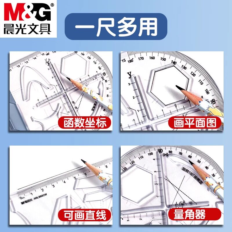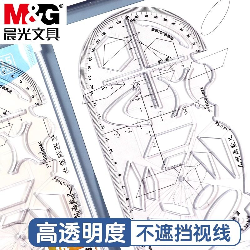 晨光多功能几何函数尺几何图形函数作图尺高中生用数学函数量角器测量硬尺画图多功能模板大象尺画图尺绘图