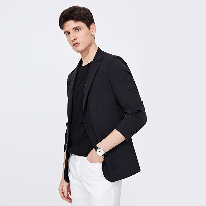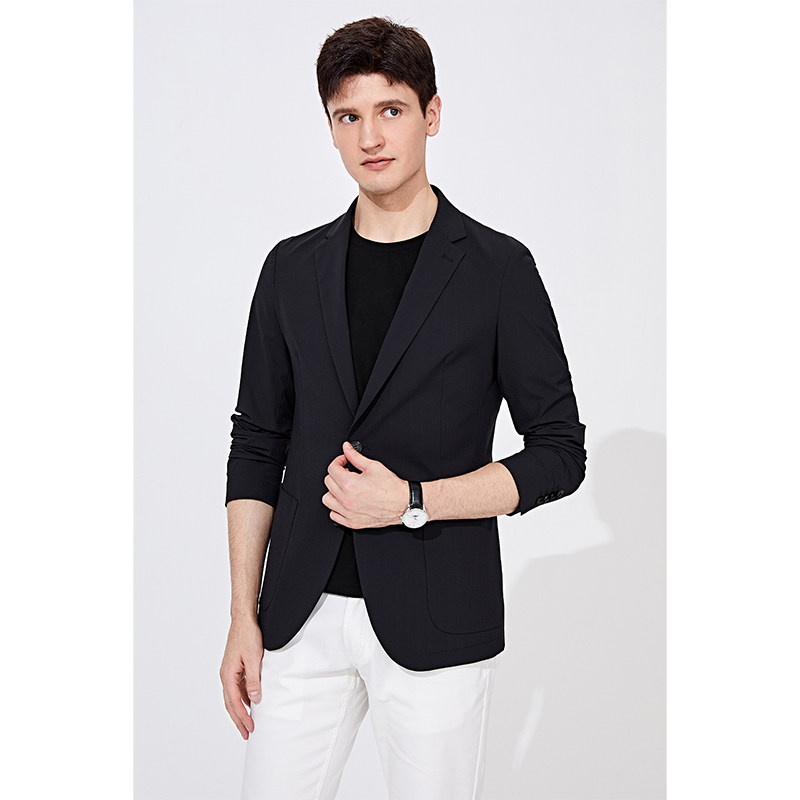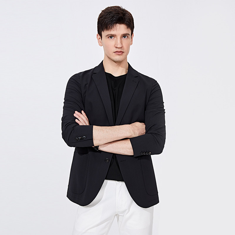 Navigare意大利小帆船黑色修身西服男秋季薄款商务平驳领西装外套