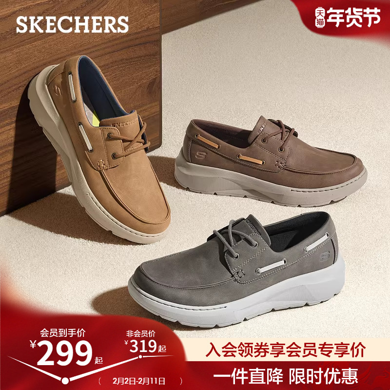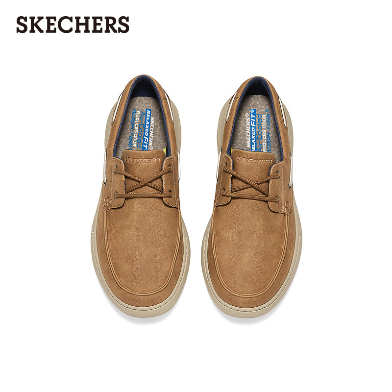 斯凯奇秋冬新款男子舒适休闲皮鞋商务鞋通勤鞋德比鞋软底上班板鞋