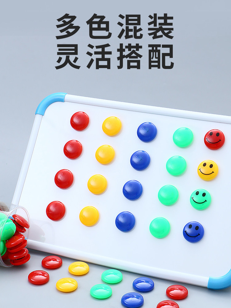 晨光圆形彩色磁粒黑板贴小磁扣强磁白板磁铁可爱吸铁石白班贴教学用具老师用吸磁贴红色微笑磁吸
