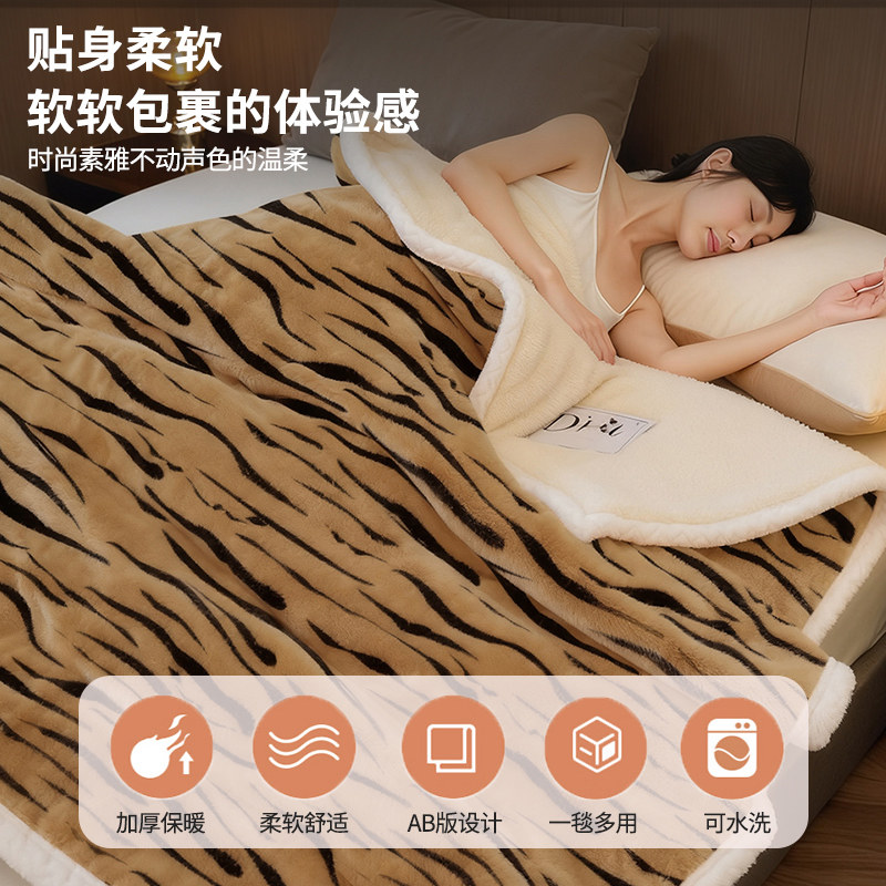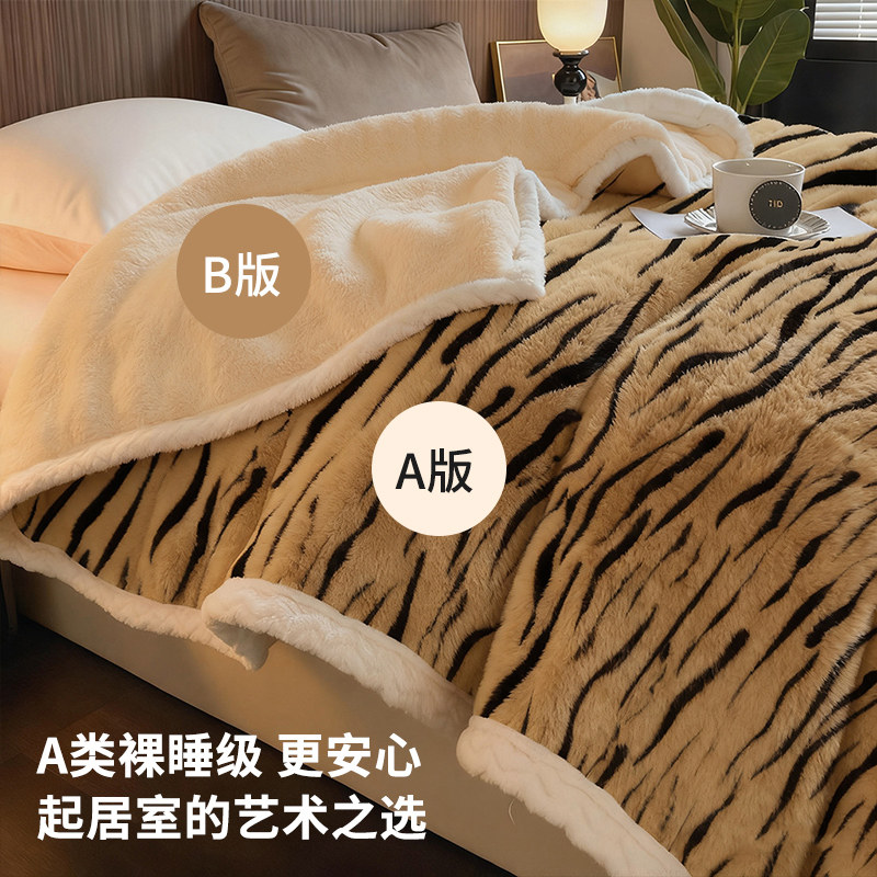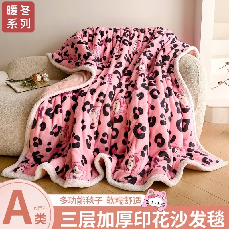 绒毯三层加厚冬2025新款牛奶绒办公室午睡毛毯柔软印花沙发毯保暖
