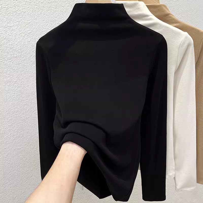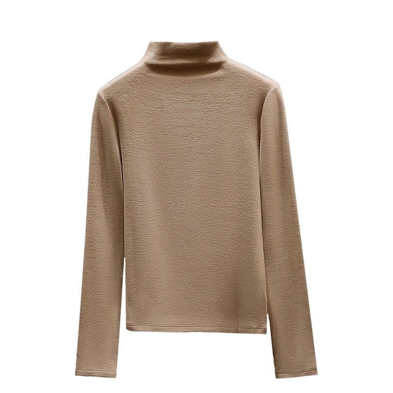 高领双面德绒打底衫女秋冬季修身显瘦加绒加厚内搭磨毛堆堆领上衣