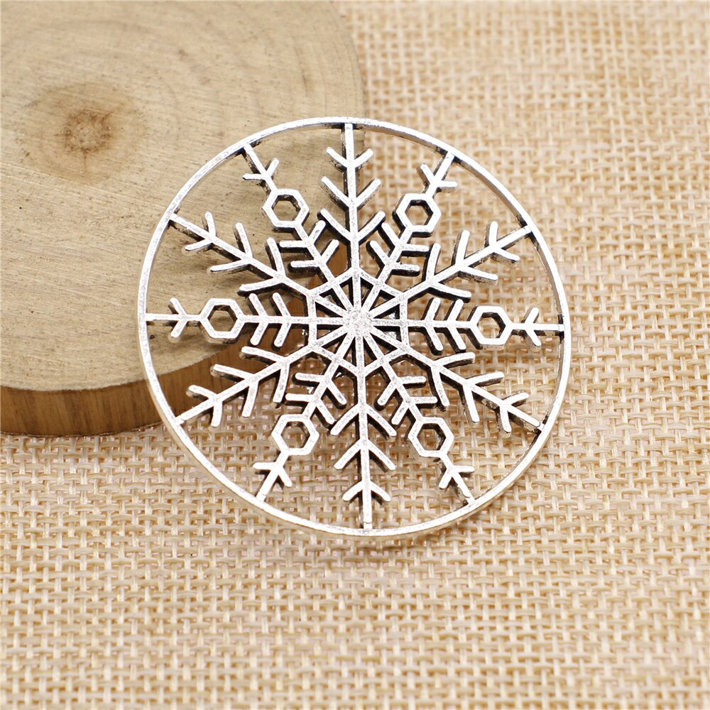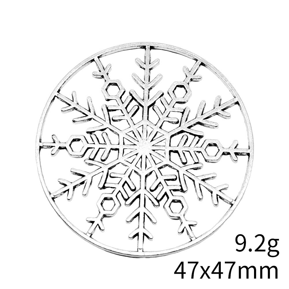 2个/包 47x47mm 古银色锌合金 镂空圆形雪花花片吊坠 ABD-C13006