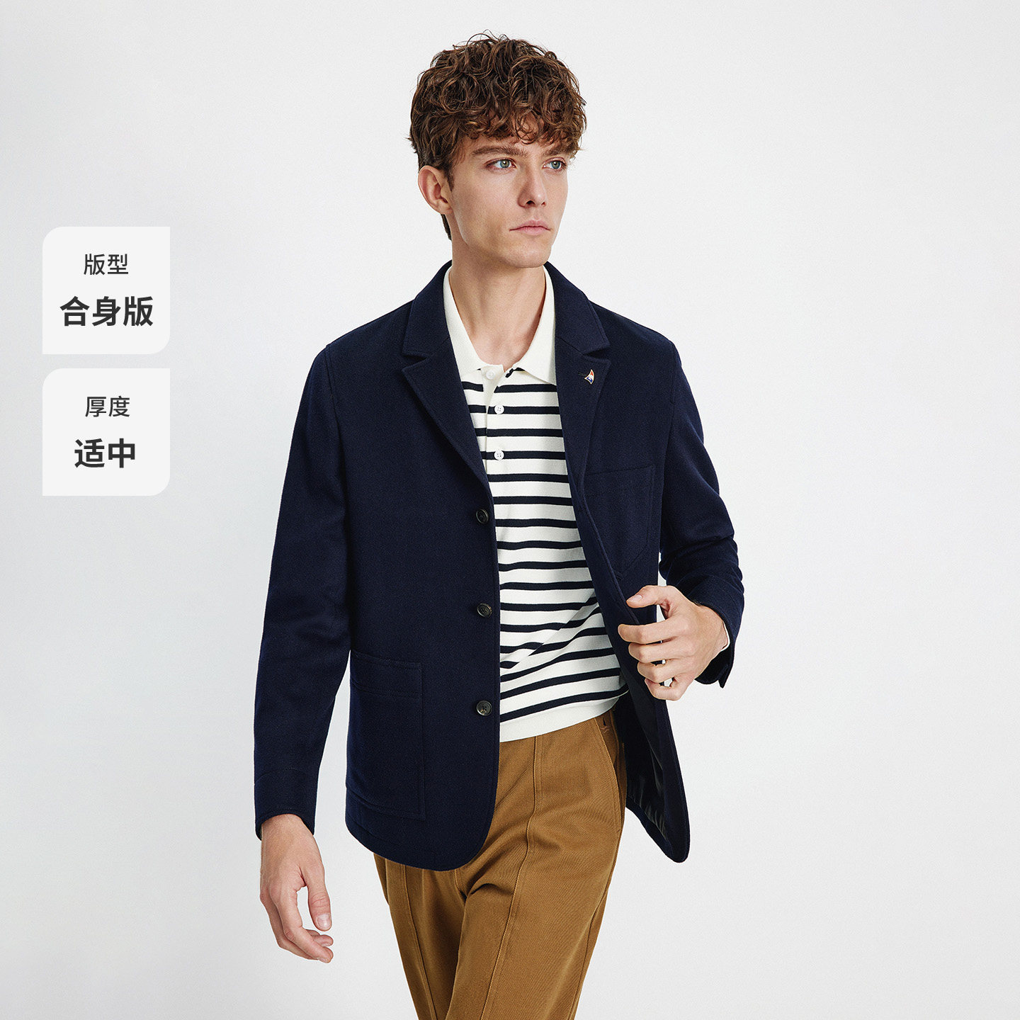 Navigare意大利小帆船纯羊毛通勤西装男2025秋冬新品毛呢西服外套