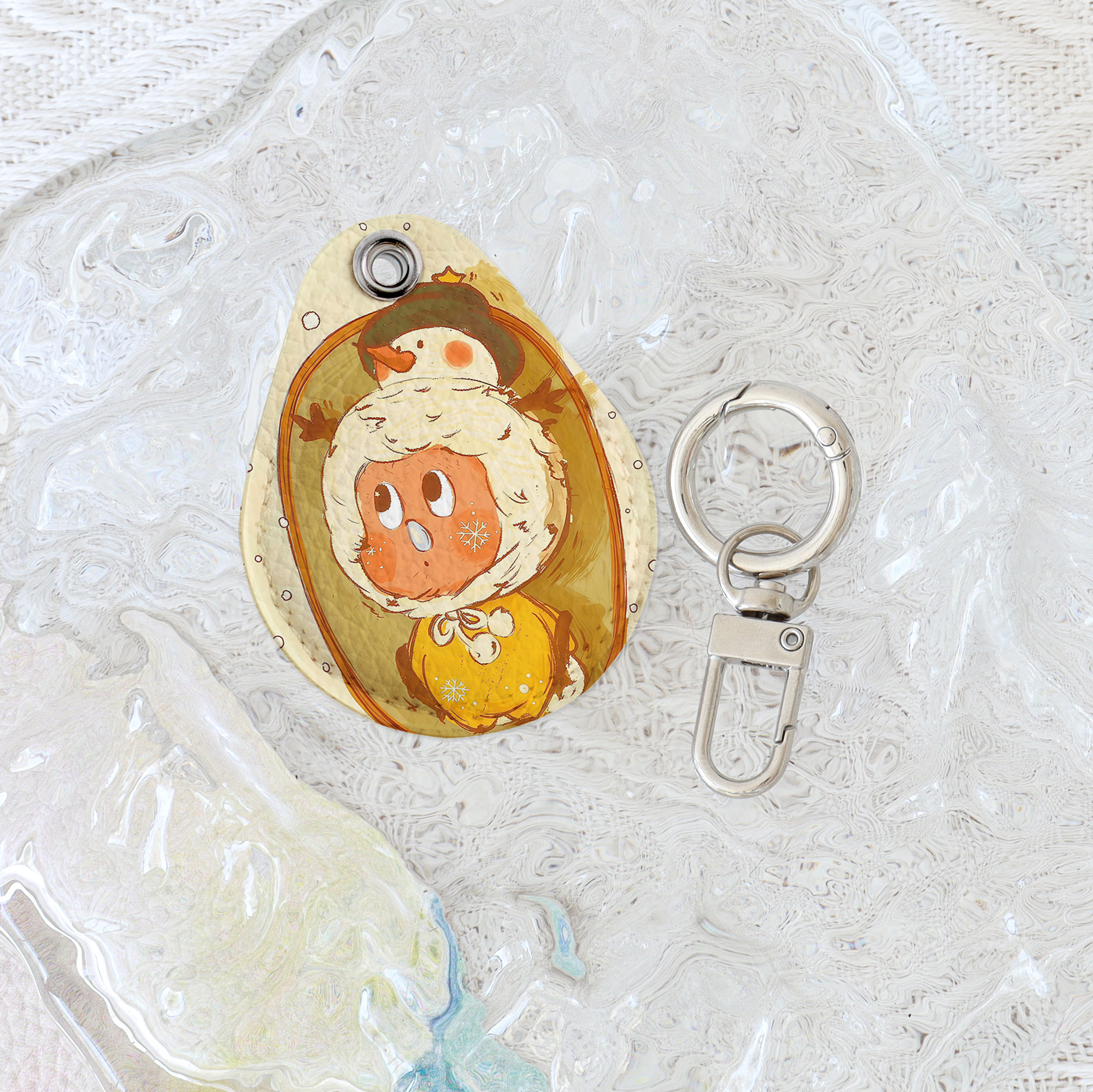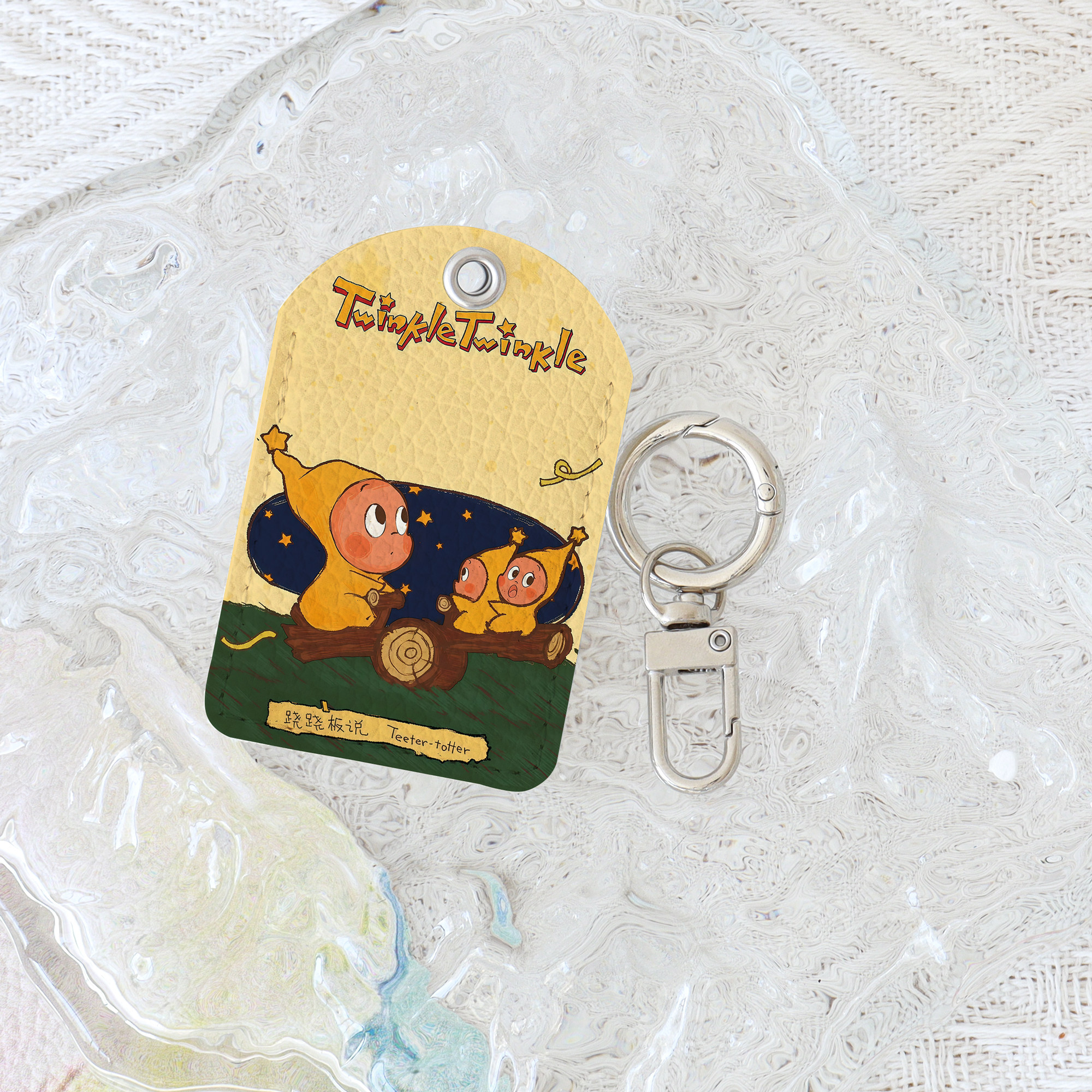 星星人门禁卡套油画长方形水滴钥匙扣迷你感应小区公交电梯保护套