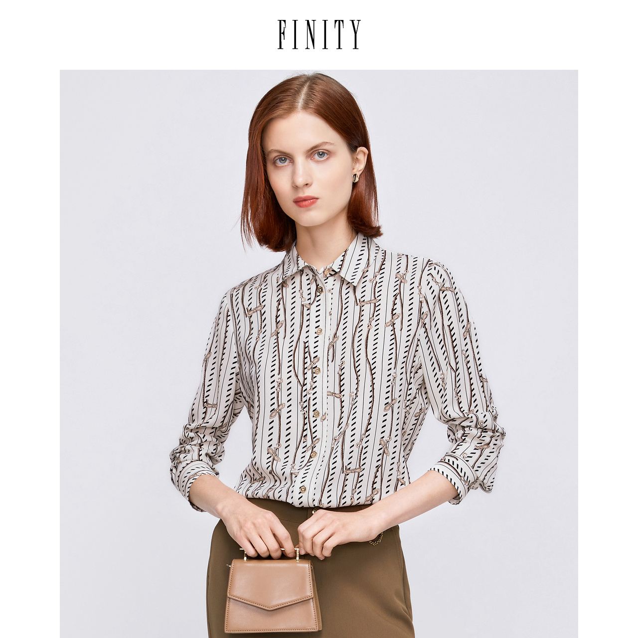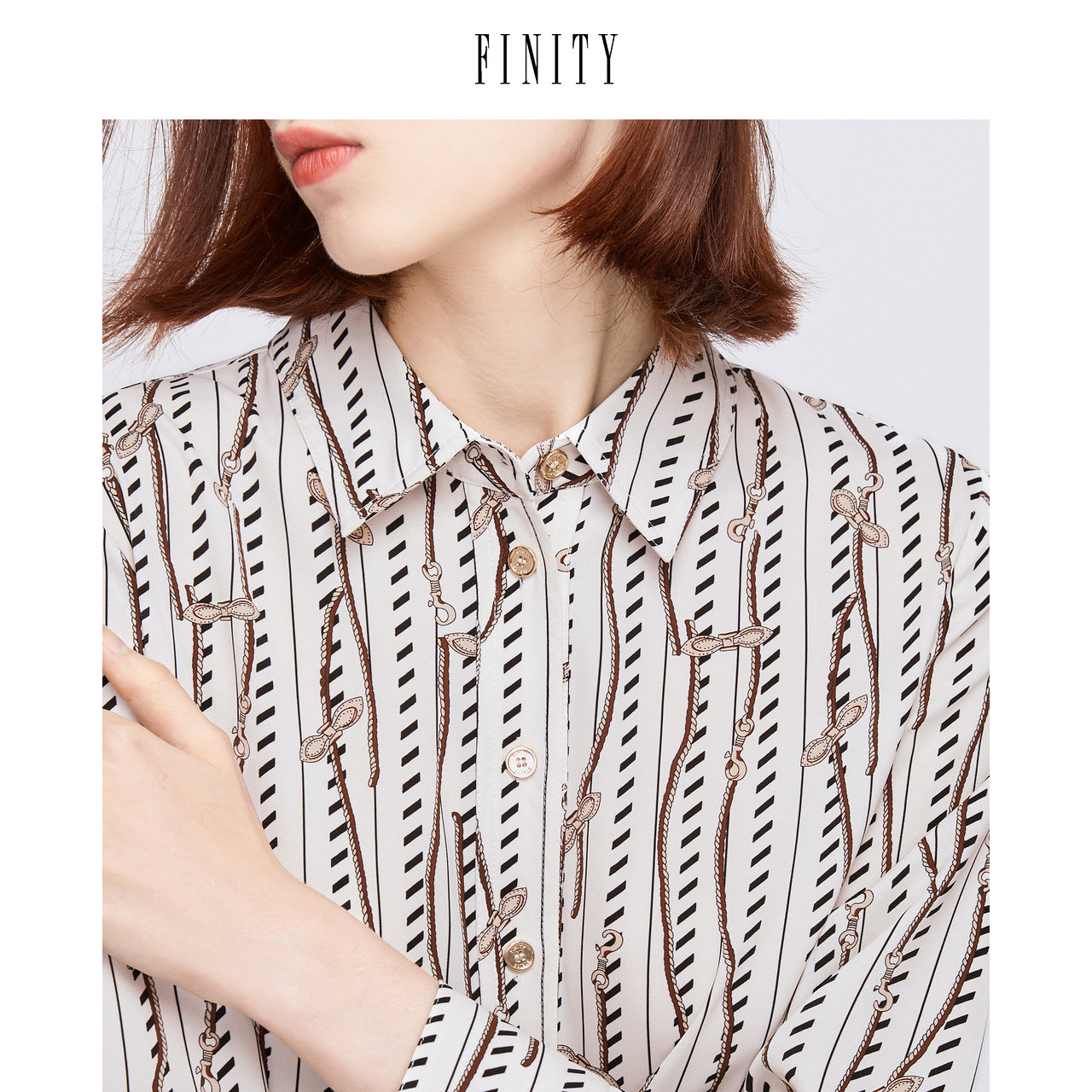 FINITY2025秋季新款通勤气质印花上衣设计感小众雪纺长袖衬衫女