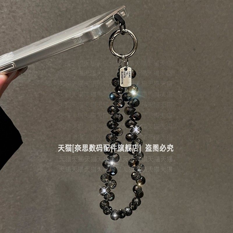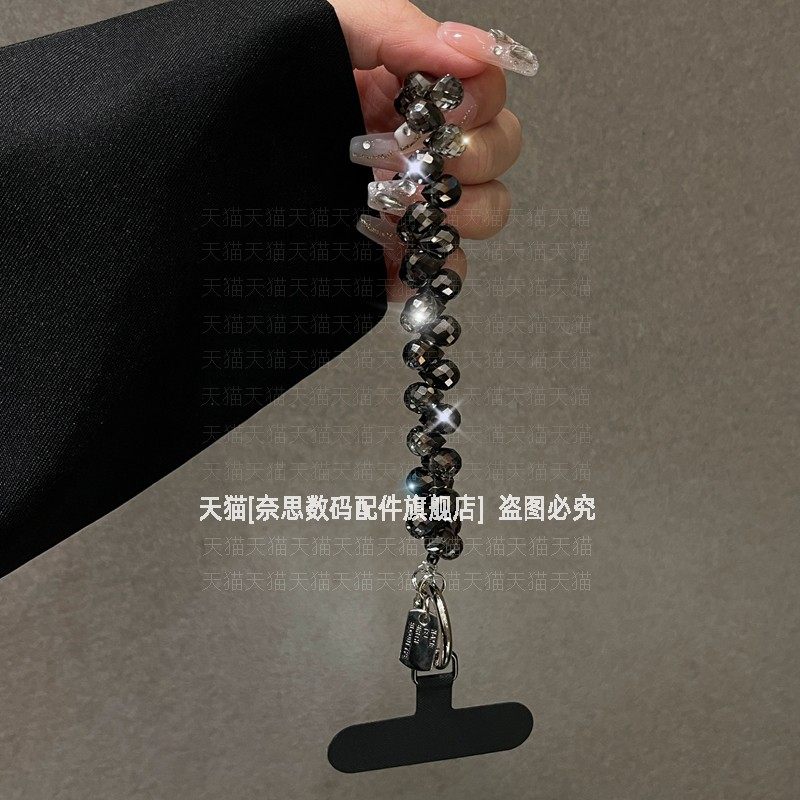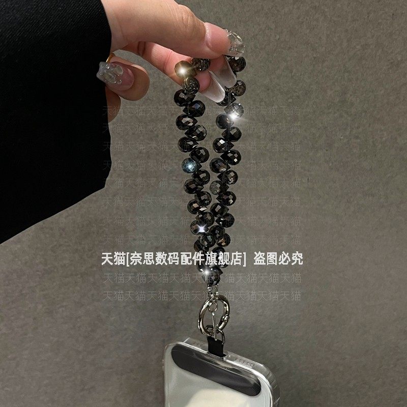 超闪黑水晶手机链手腕挂绳链条腕带手工珠子串珠甜酷辣妹网红女手链挂饰配饰防丢钥匙扣链子小众高级贴片夹片