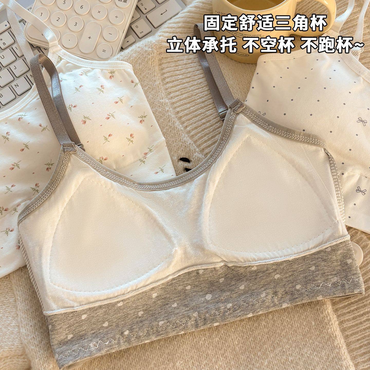 纯棉内衣女运动透气初高中学生背心少女防震固定杯垫无痕文胸抹胸