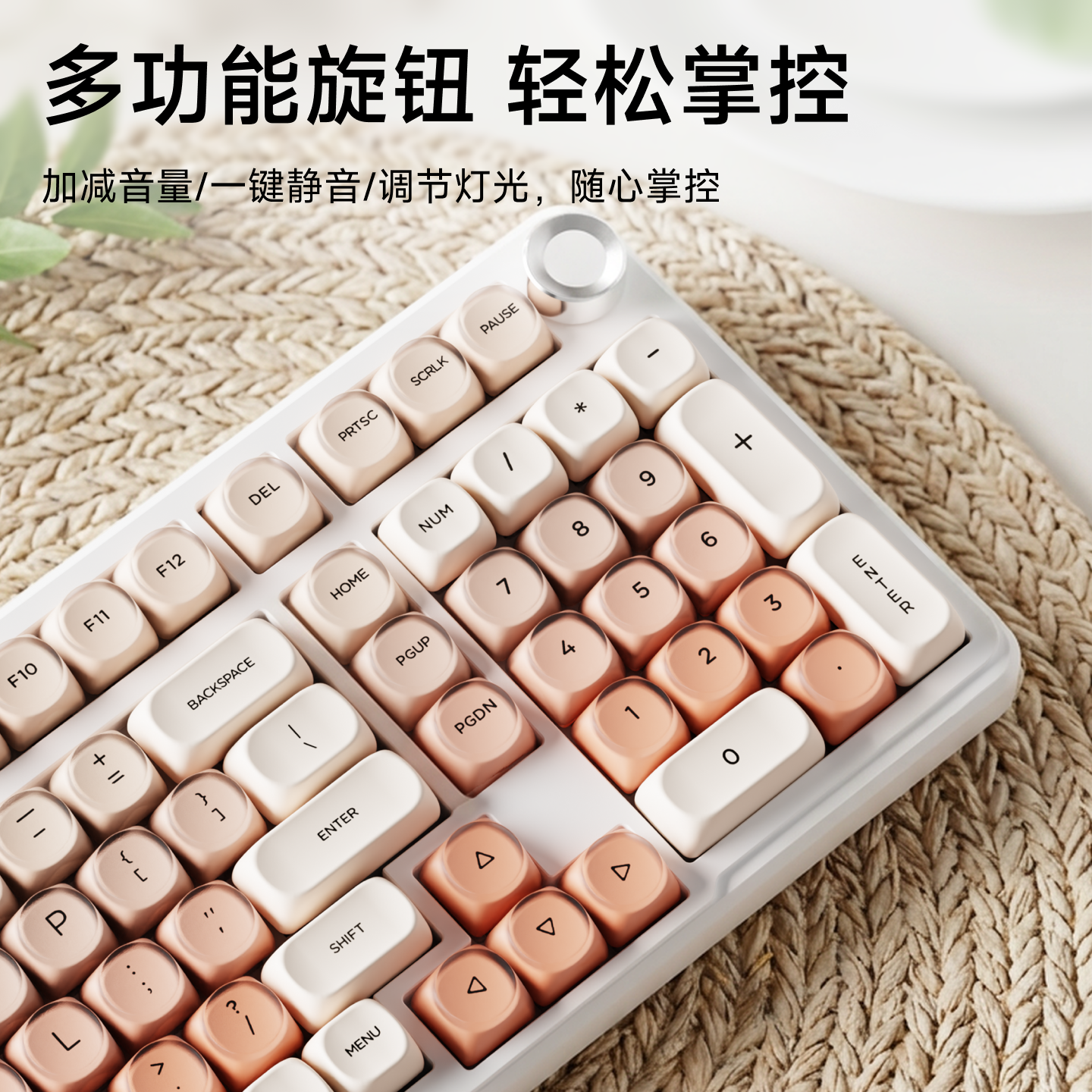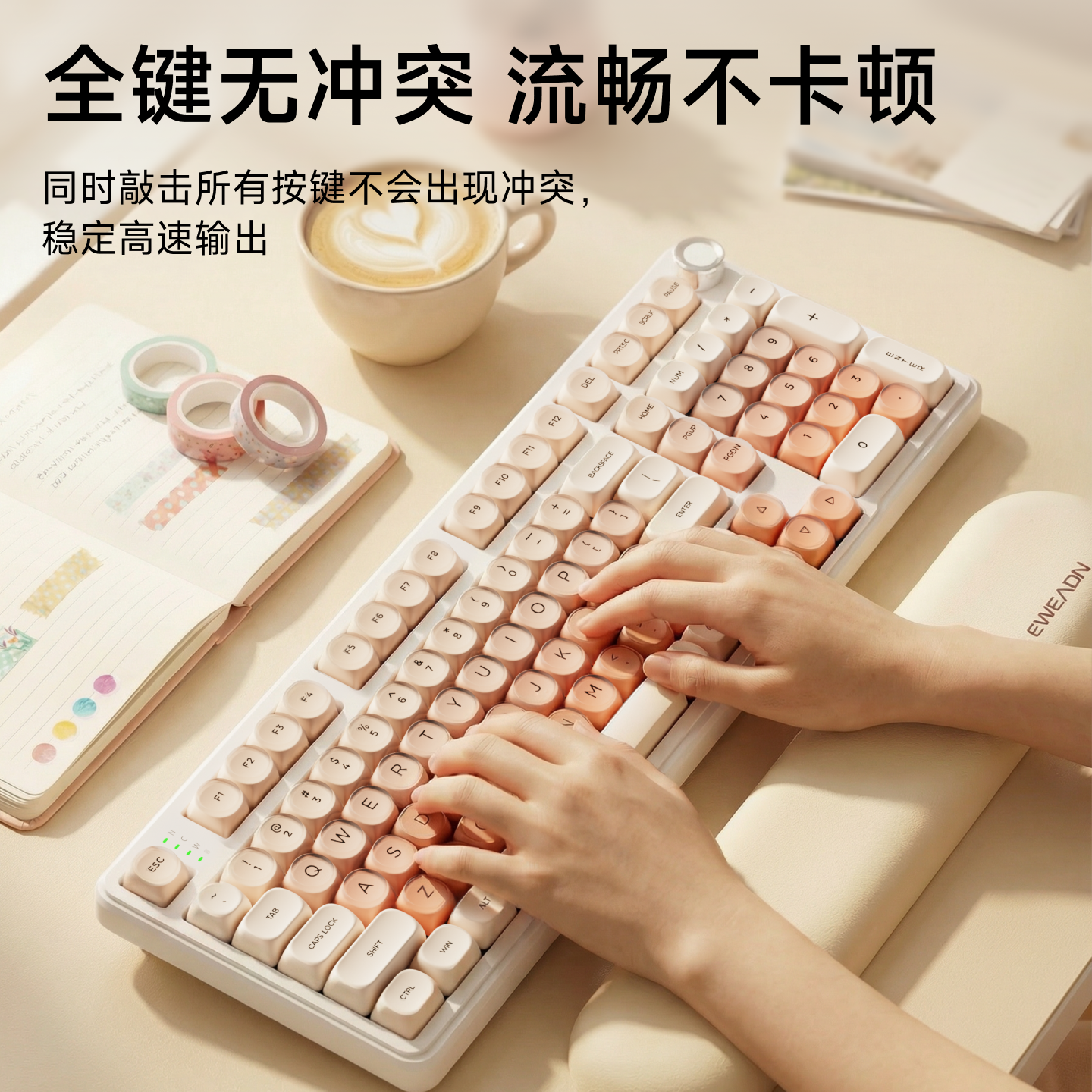 前行者粉底液无线机械键盘鼠标套装蓝牙女生办公专用高颜值青红轴