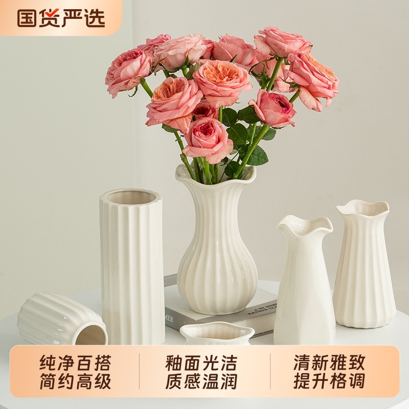 北欧白色陶瓷花瓶客厅插花摆件水培鲜花干花简约家居餐桌装饰摆设