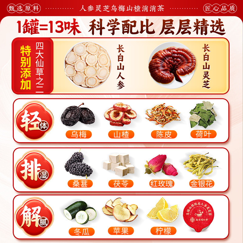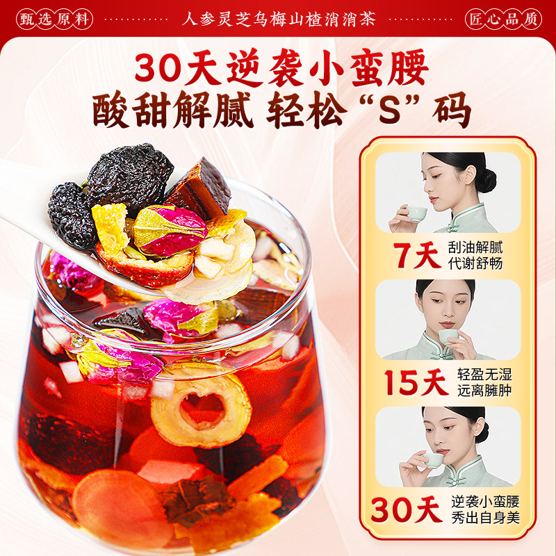 南京同仁堂苹果乌梅山楂消消茶陈皮刮油减茯排苓肥去脂湿气养生茶