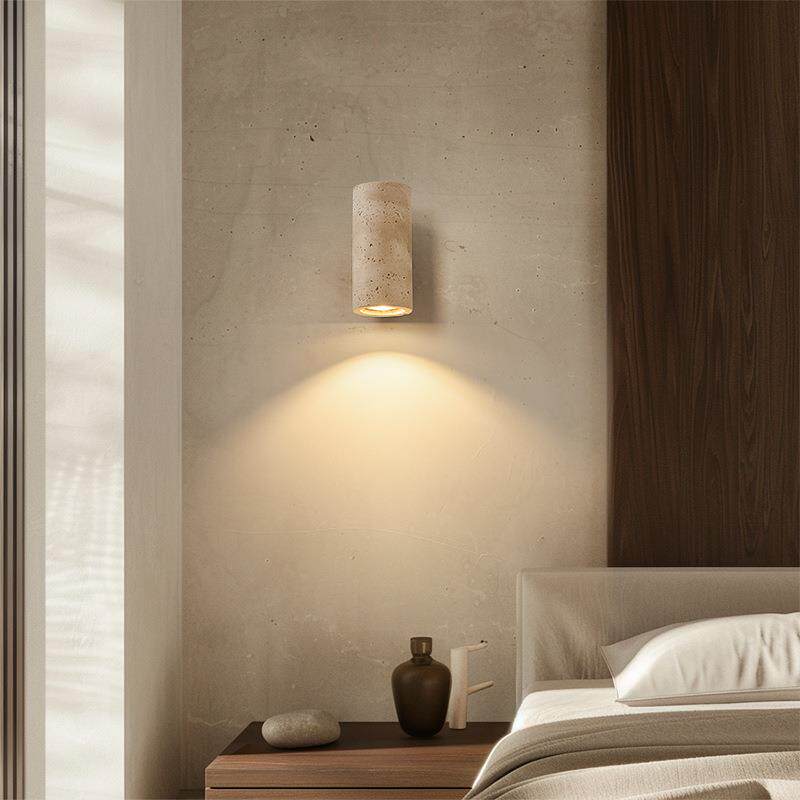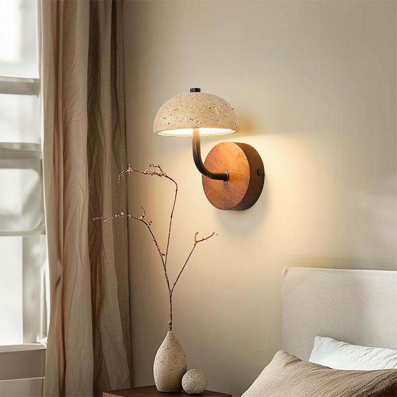 诧寂风卧室床头灯背景墙过道氛围民宿玄关走廊侘寂风天然洞石壁灯