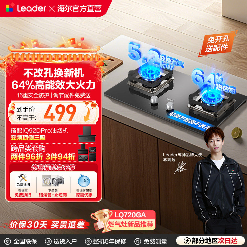 统帅Leader海尔智家大火力燃气灶家用嵌入天然气灶台式猛火灶官方