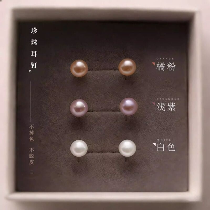 天然淡水珍珠耳钉女生2026馒头999足银针养耳洞耳环耳饰精致塑料
