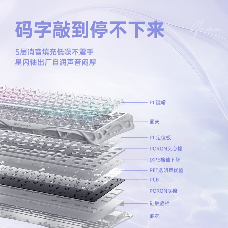 重力星球75配列机械键盘无线蓝牙电竞透明键鼠套装女生办公专用