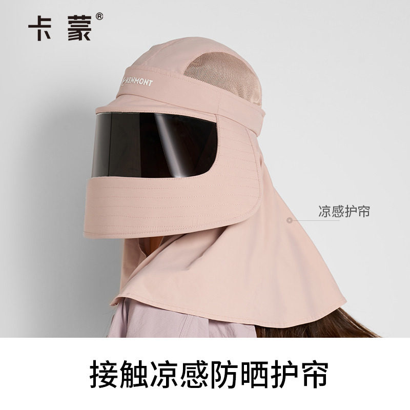 卡蒙遮全脸护颈一体防晒帽子面罩女夏可折叠全防护空顶护妆遮阳帽