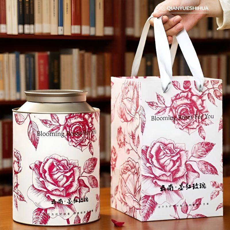 冻干墨红玫瑰花茶大桶食用养生茶大朵花玫瑰花冠大铁罐120g礼盒装
