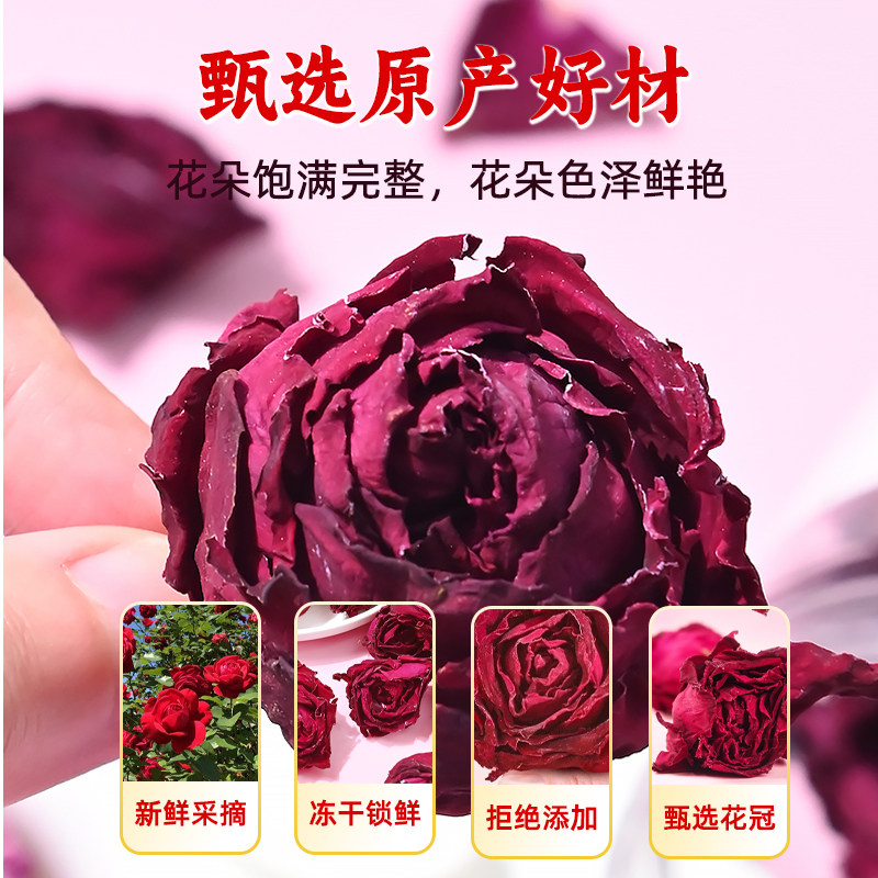 平阴玫瑰花茶100g药食干花蕾重瓣玫瑰无硫正品玫瑰花干花泡茶两用