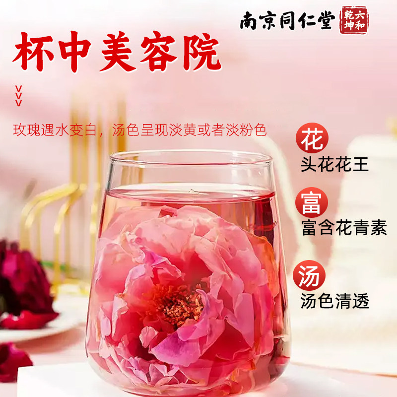 南京同仁堂墨红玫瑰玫瑰花茶重瓣大朵冻干疏肝解郁女性养颜魅格格