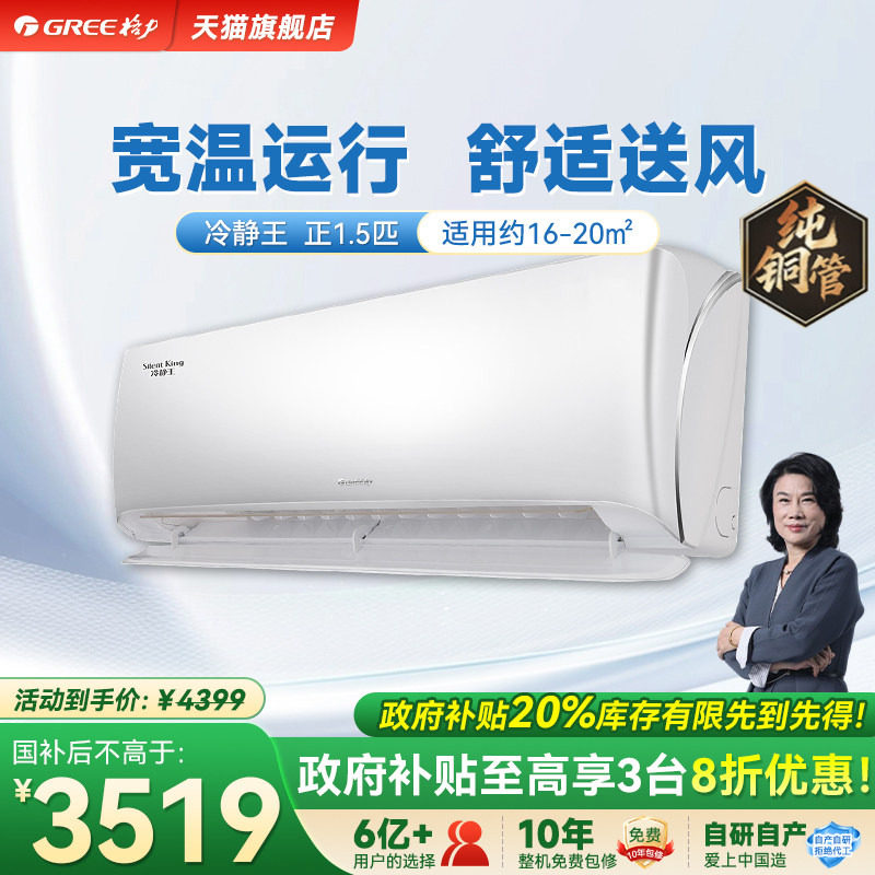 格力正1.5匹新一级能效变频冷暖智能壁挂式空调挂机冷静王