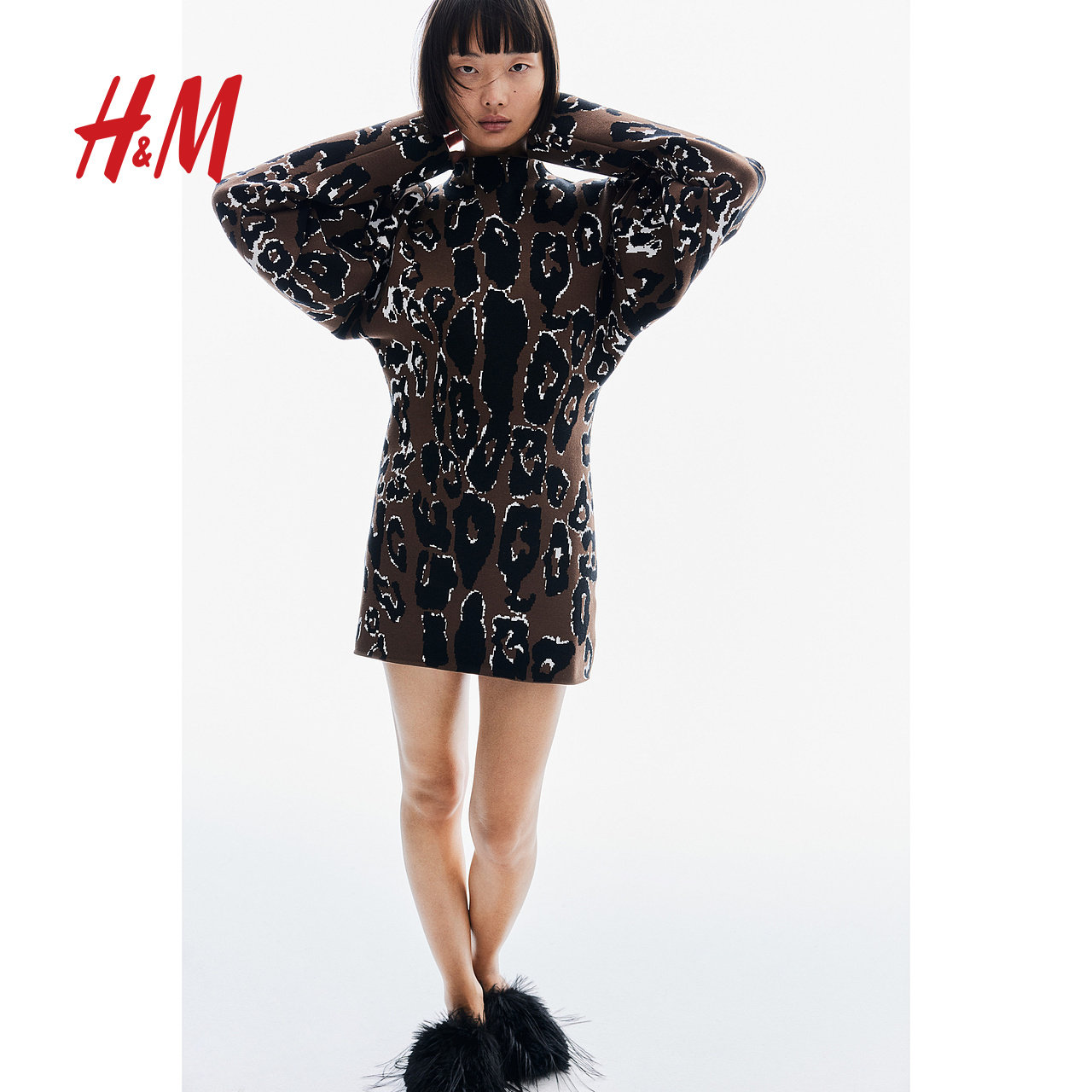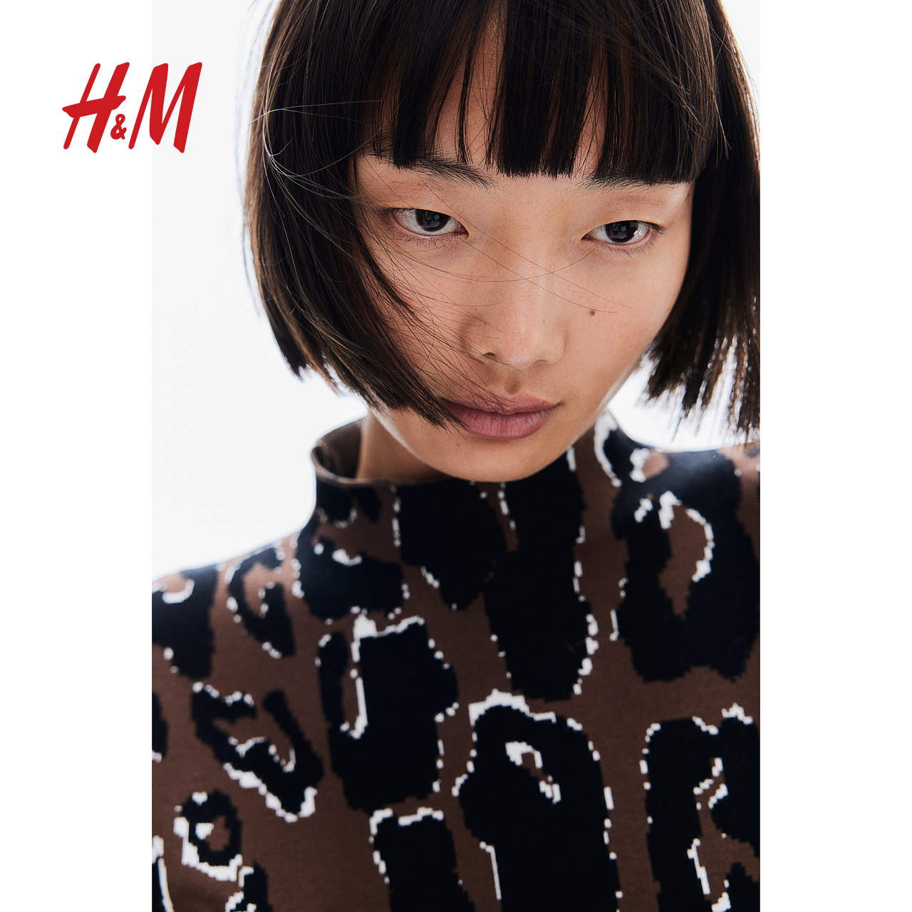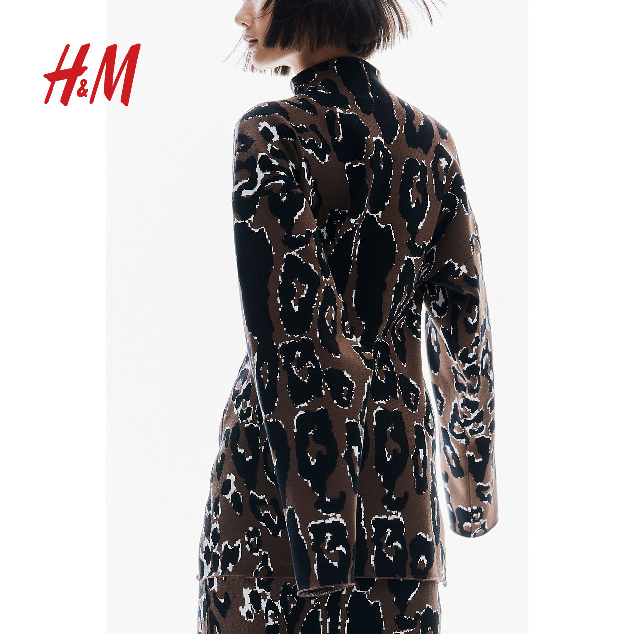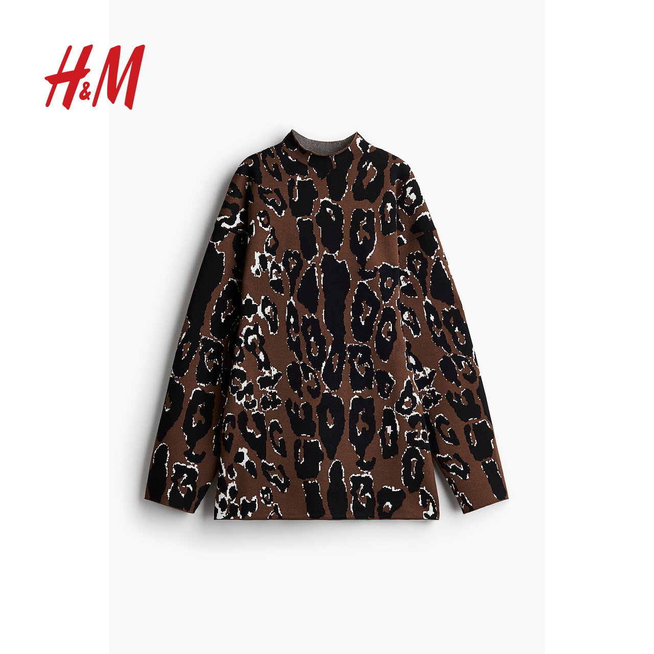 【致臻系列】HM女装毛针织衫春季提花高领豹纹套衫1255407