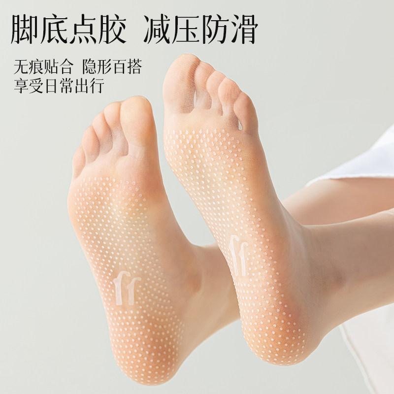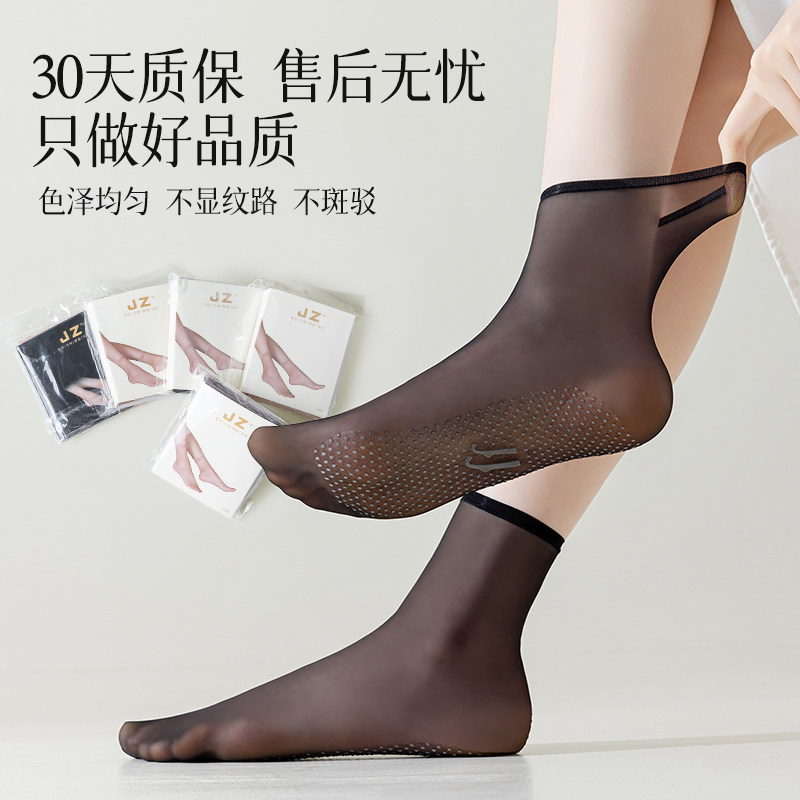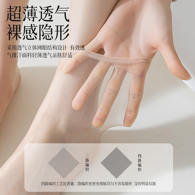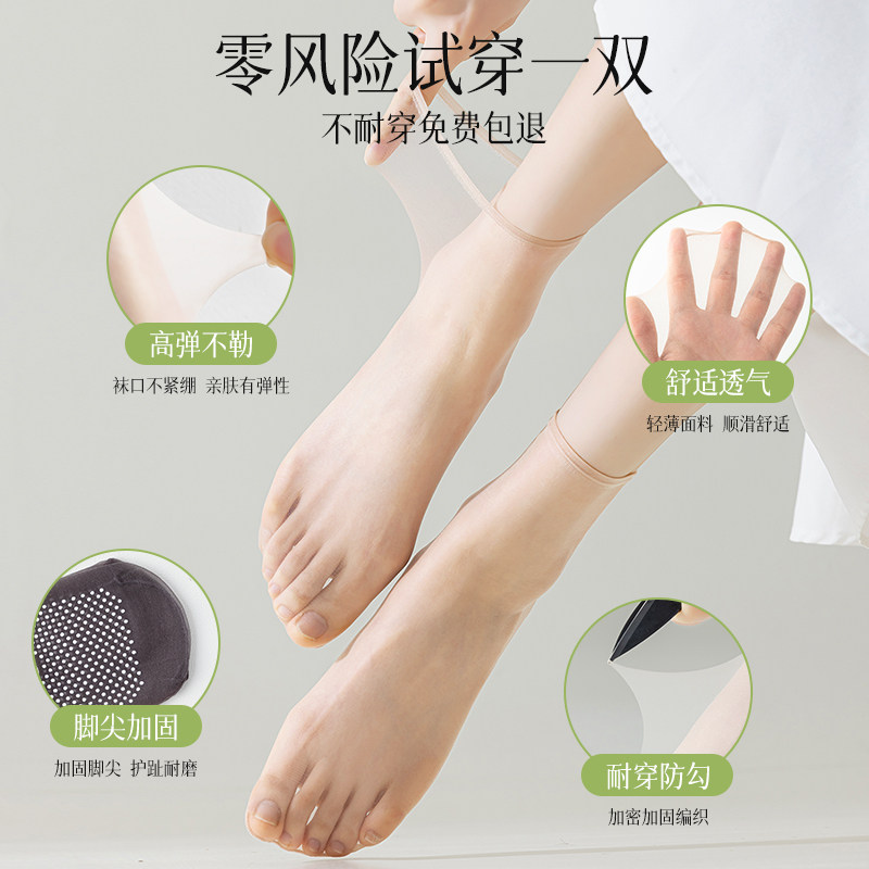 丝袜女短夏季薄款耐磨防勾丝无痕脚尖透明隐形防滑水晶袜中筒夏天