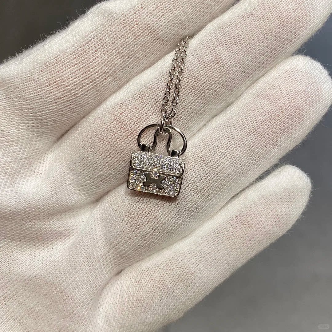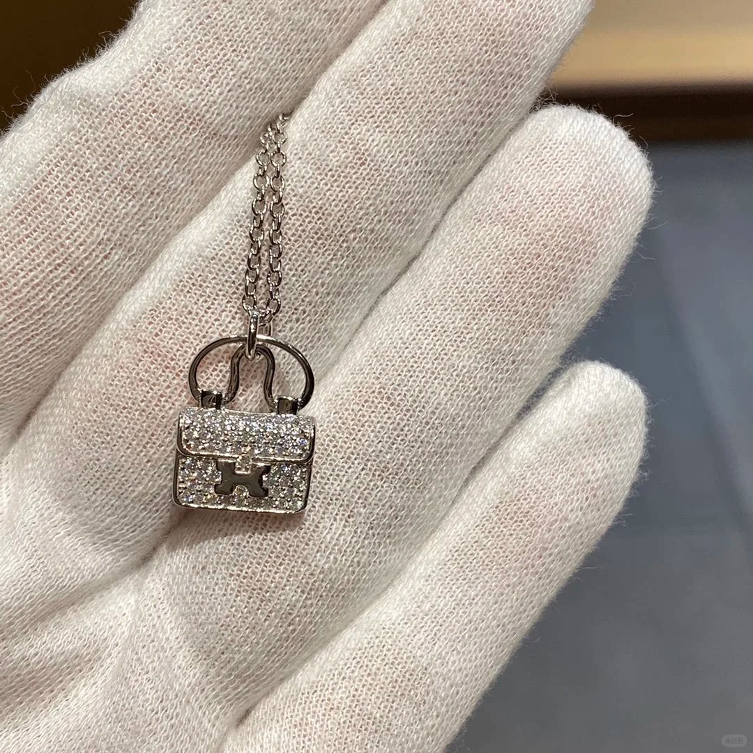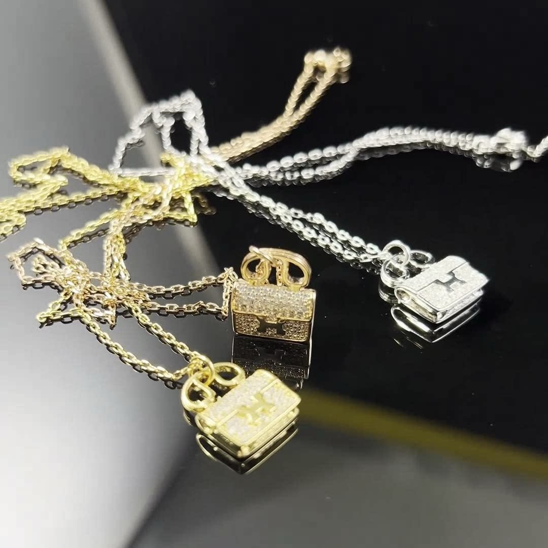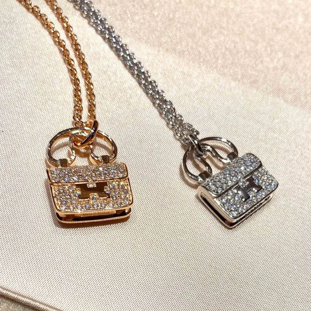 轻奢包包项链女镀18K玫瑰金小众H字母康康包锁骨链黄金锁头新款