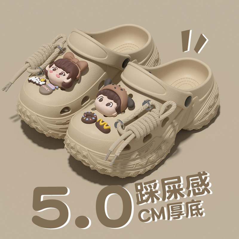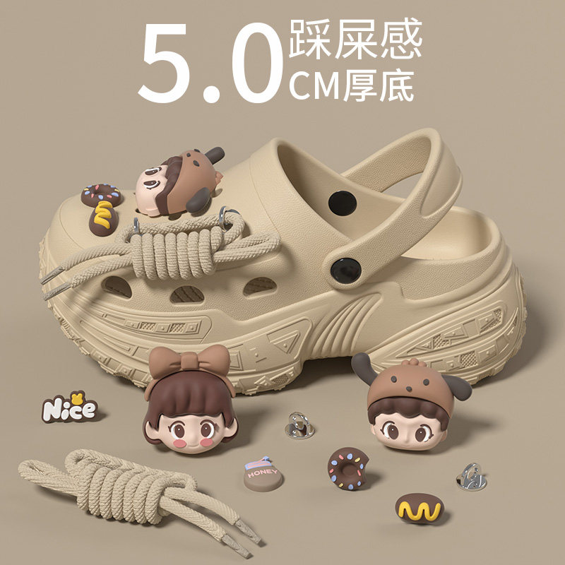 DIY可爱小女孩洞洞鞋女2025新款外出防滑舒适时尚百搭增高洞洞鞋